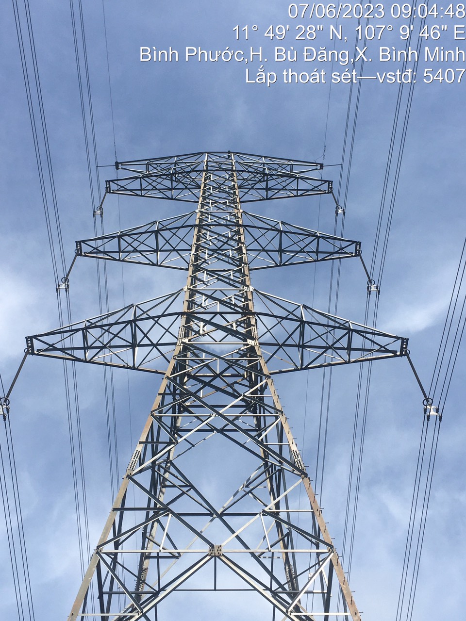 Kim thu sét được lắp tại vị trí 5407 đường dây 500kV Pleiku 2 – Chơn Thành