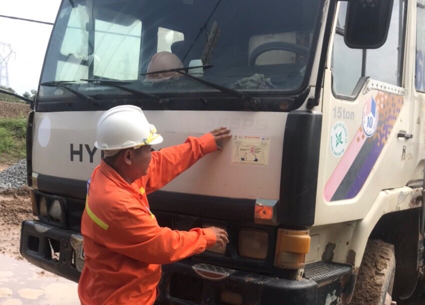 Dán decan tuyên truyền bảo vệ HLATLĐCA lên các phương tiện cơ giới hoạt động gần đường dây cao áp