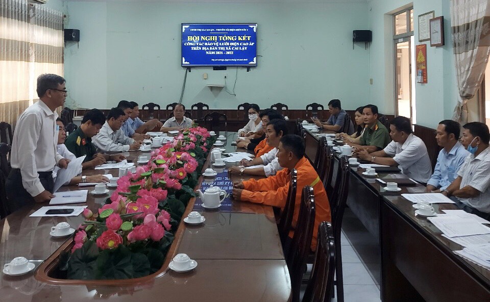Tham dự Hội nghị sơ kết công tác bảo vệ hành lang an toàn lưới điện tại UBND thị xã Cai Lậy, tỉnh Tiền Giang