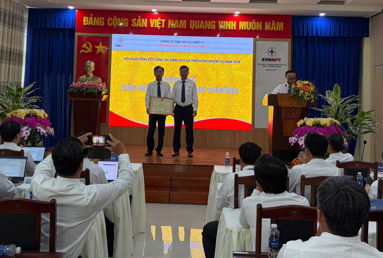 Tại Hội nghị, các tập thể và cá nhân có thành tích xuất sắc trong công tác Đảng và chuyên môn năm 2025 đã được trao tặng các danh hiệu, giấy khen của Tổng công ty Truyền tải điện Quốc gia và Công ty Truyền tải điện 4.