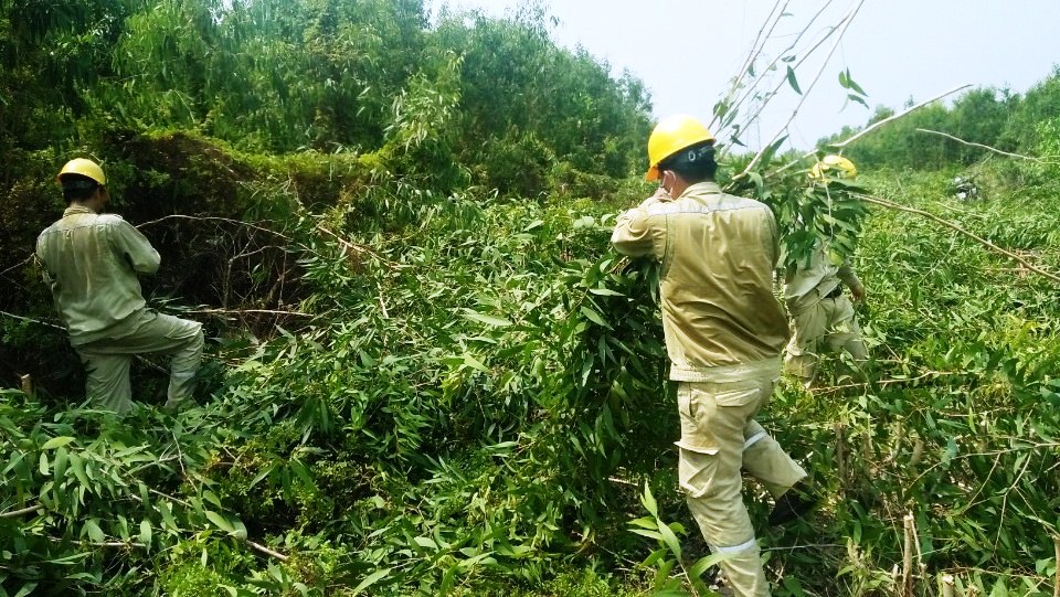 Phát quang, gom cây khô, thực bì khoảng trụ 65-66 đường dây 220kV Kiên Bình – Châu Đốc