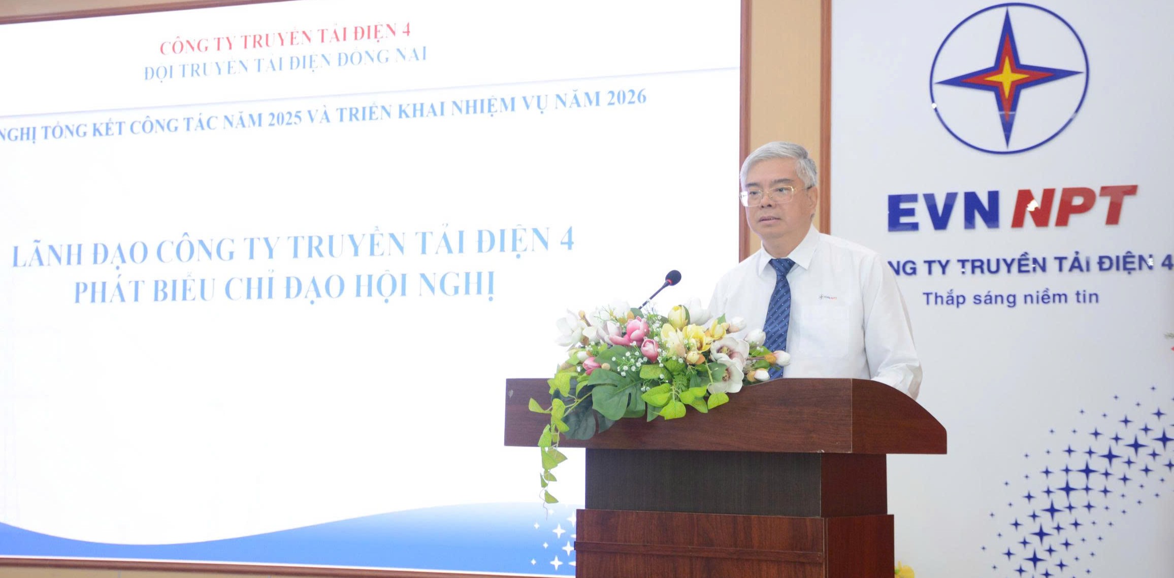 Phát biểu chỉ đạo tại Hội nghị, đồng chí Nguyễn Văn Hóa – Bí thư Đảng ủy, Giám đốc Công ty ghi nhận và biểu dương những kết quả nổi bật mà tập thể Đội Truyền tải điện Đồng Nai đã đạt được trong năm 2025. Đồng chí nhấn mạnh, trong thời gian tới, Đội cần tập trung mọi nguồn lực để bảo đảm vận hành lưới điện truyền tải an toàn, ổn định và tin cậy, đặc biệt là lưới điện 500kV liên kết các nguồn; đồng thời triển khai đồng bộ, quyết liệt các biện pháp bảo đảm an toàn lao động, giảm thiểu sự cố và tổn thất điện năng.