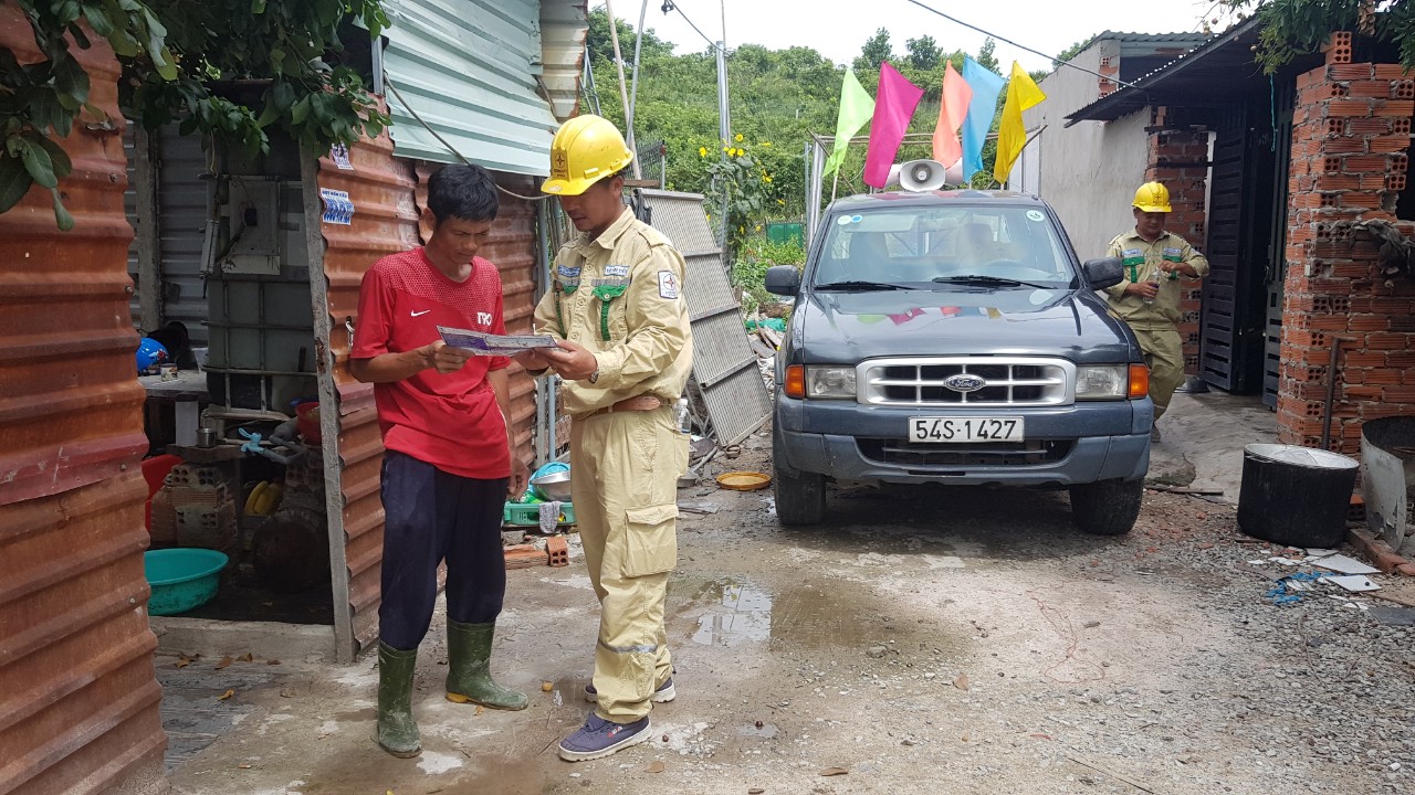 Để đảm bảo an toàn cho người và thiết bị trong mùa mưa bão cũng như chủ động ứng phó với các hiện tượng thời tiết bất thường nhằm hạn chế thấp nhất thiệt hại do thiên tai gây ra, đồng thời nâng cao hơn nữa về ý thức bảo vệ hành lang an toàn lưới điện cao áp trong nhân dân cũng như chính quyền địa phương, giúp cho nhân dân nơi đây ngày một hiểu rõ hơn về tầm quan trong của lưới điện cao áp đối với sự phát triển kinh tế, xã hội của đất nước; Ngày 29/09 đến 03/10/2020, Đội TTĐ Nhơn Trạch đã phối hợp chính quyền địa phương tuyên truyền, vận động và thực hiên chằng néo mái tôn, xử lý thu gom các vật liệu dễ bay của gần 30 hộ dân có nhà ở xung quanh Trạm 220kV Vũng Tàu, thuộc khu phố 1, Phường 11, TP. Vũng Tàu, tỉnh Bà Rịa-Vũng Tàu. Song song đó, đội sử dụng xe gắn pa-nô tuyên truyền, loa phóng thanh lưu động kết hợp triển khai ký biên bản cam kết và tặng 30 phần quà cho các hộ dân trong phường 11 nhằm tạo mối gắn kết lâu dài, xây dựng lòng tin và nâng cao hình ảnh về người lính truyền tải điện trong cộng đồng dân cư và chính quyền địa phương.