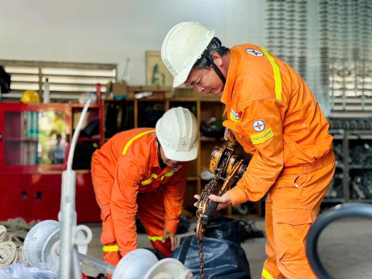 CBCNV Tổ QLVH Đường dây Thủ Đức cẩn thận kiểm tra, chuẩn bị dụng cụ thi công trước giờ xuất phát, sẵn sàng lên đường nhận nhiệm vụ tại công trình đường dây 500kV Lào Cai – Vĩnh Yên.