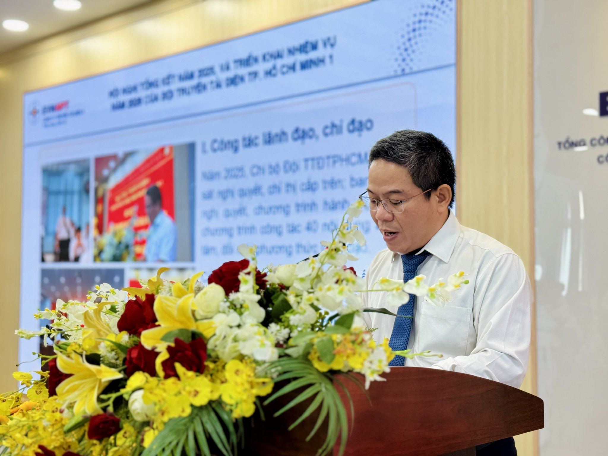 Tại Hội nghị, các đại biểu đã nghe báo cáo đánh giá kết quả năm 2025 trên các mặt công tác, trọng tâm là công tác xây dựng Đảng và thực hiện nhiệm vụ chính trị. Năm 2025, Chi bộ Đội TTĐTPHCM1 được xếp loại “Hoàn thành tốt nhiệm vụ”; đánh giá đảng viên có 09 đồng chí hoàn thành xuất sắc nhiệm vụ, 34 đồng chí hoàn thành tốt nhiệm vụ; đồng thời có cá nhân được cấp trên khen thưởng theo tiêu chuẩn “Hoàn thành xuất sắc nhiệm vụ” 05 năm liền.