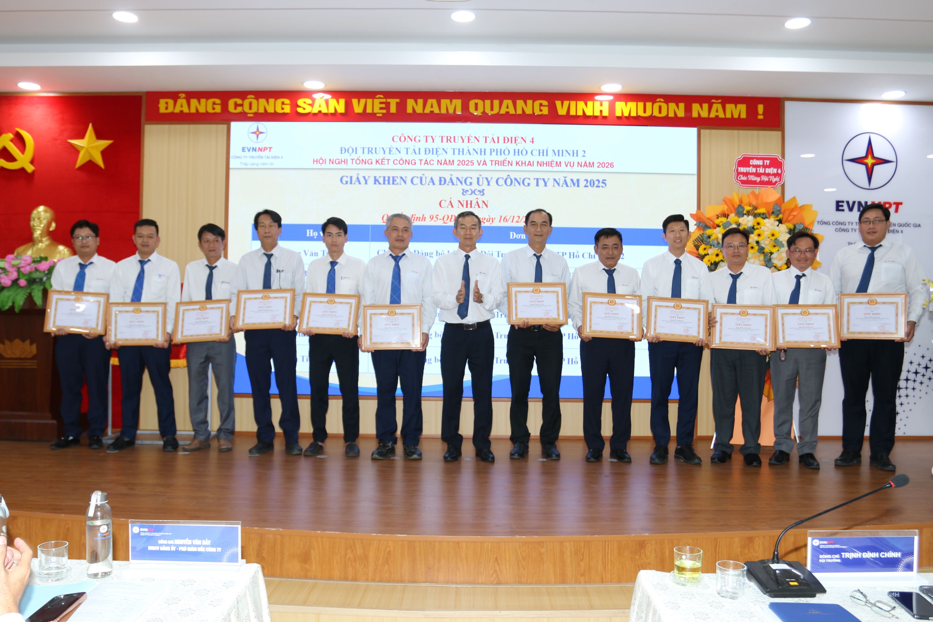 Hội nghị Tổng kết năm 2025 của Đội TTĐTPHCM2 đã diễn ra thành công tốt đẹp, thể hiện rõ ý chí, quyết tâm và tinh thần trách nhiệm của tập thể cán bộ, đảng viên và người lao động trong việc giữ vững dòng điện an toàn – liên tục – ổn định, đóng góp tích cực vào sự phát triển bền vững của Công ty Truyền tải điện 4 và Tổng công ty Truyền tải điện Quốc gia.