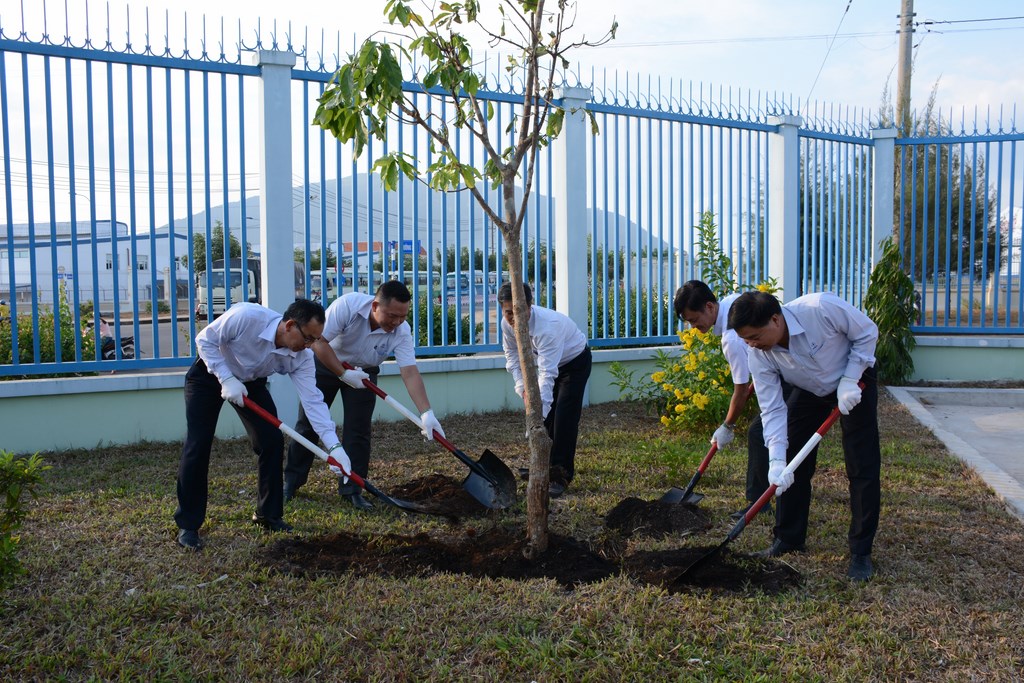Ban lãnh đạo Công ty trồng cây lưu niệm tại trụ sở của Đội.