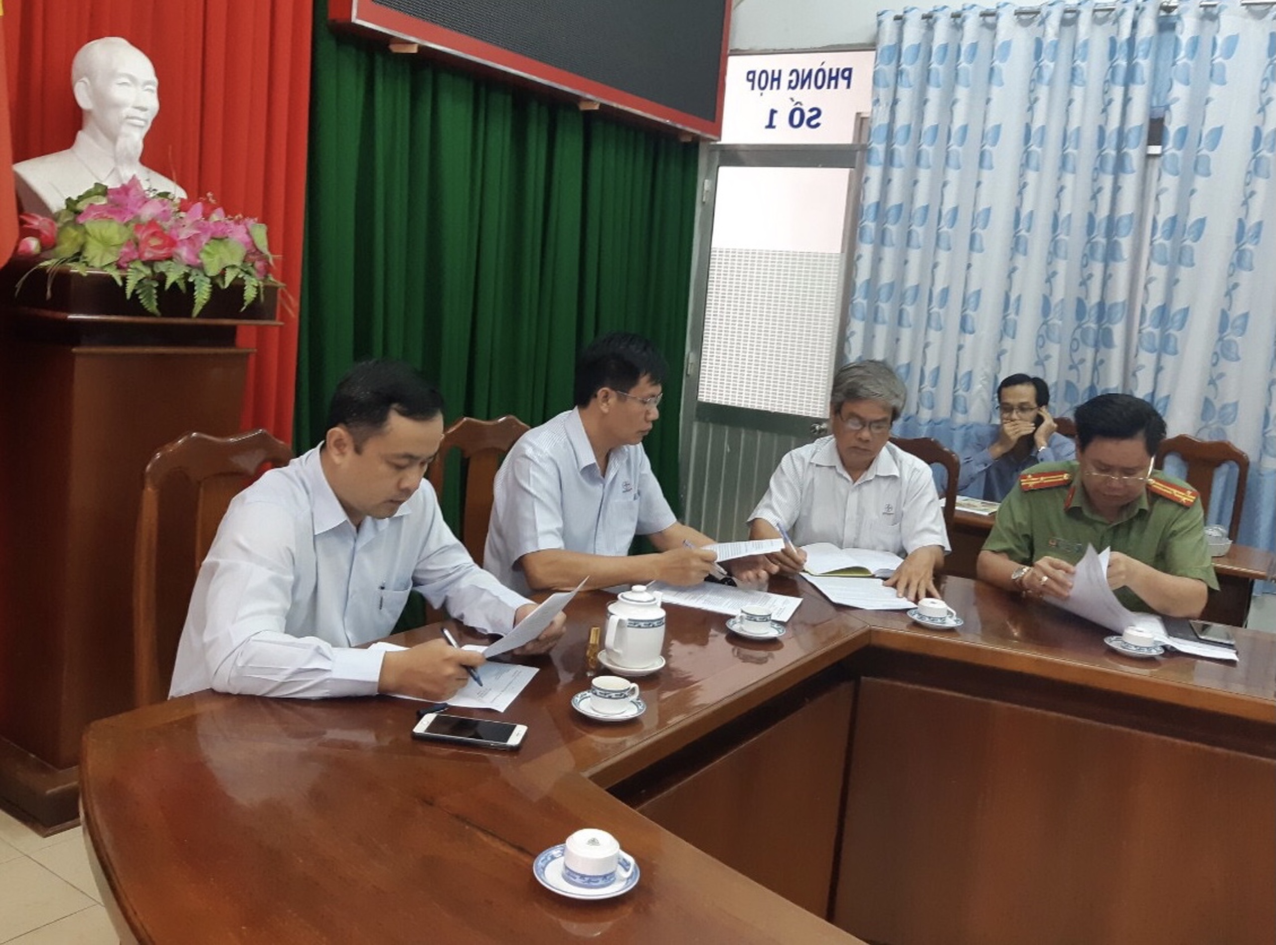 Ông Nguyễn Xuân Hòa – Phó Giám Đốc PTC4 (thứ hai từ trái sang) và Ông Lê Xuân Thụ – Giám Đốc TTĐMT1 (thứ ba từ trái sang) họp với Lãnh đạo UBND Quận Ô Môn.