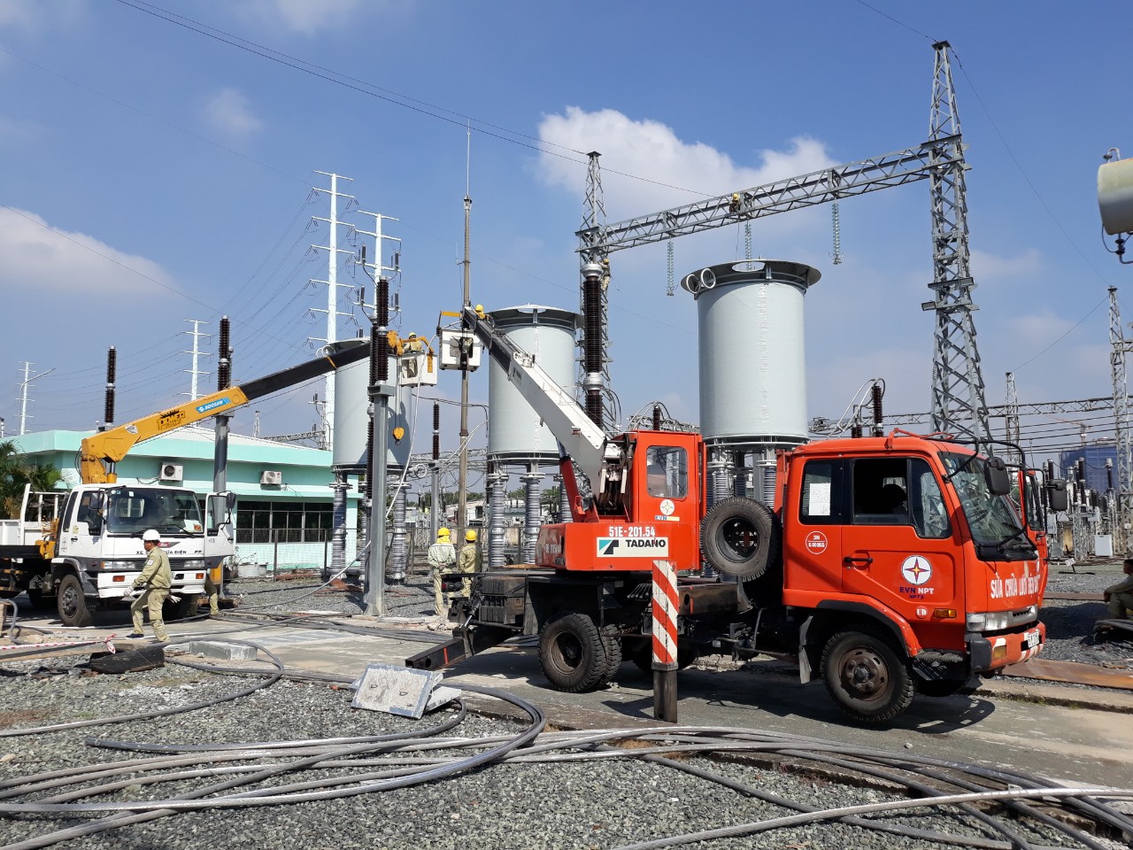 Công nhân TTDVKT4 đấu nối dây dẫn nhất thứ vào Cuộn kháng KI212.