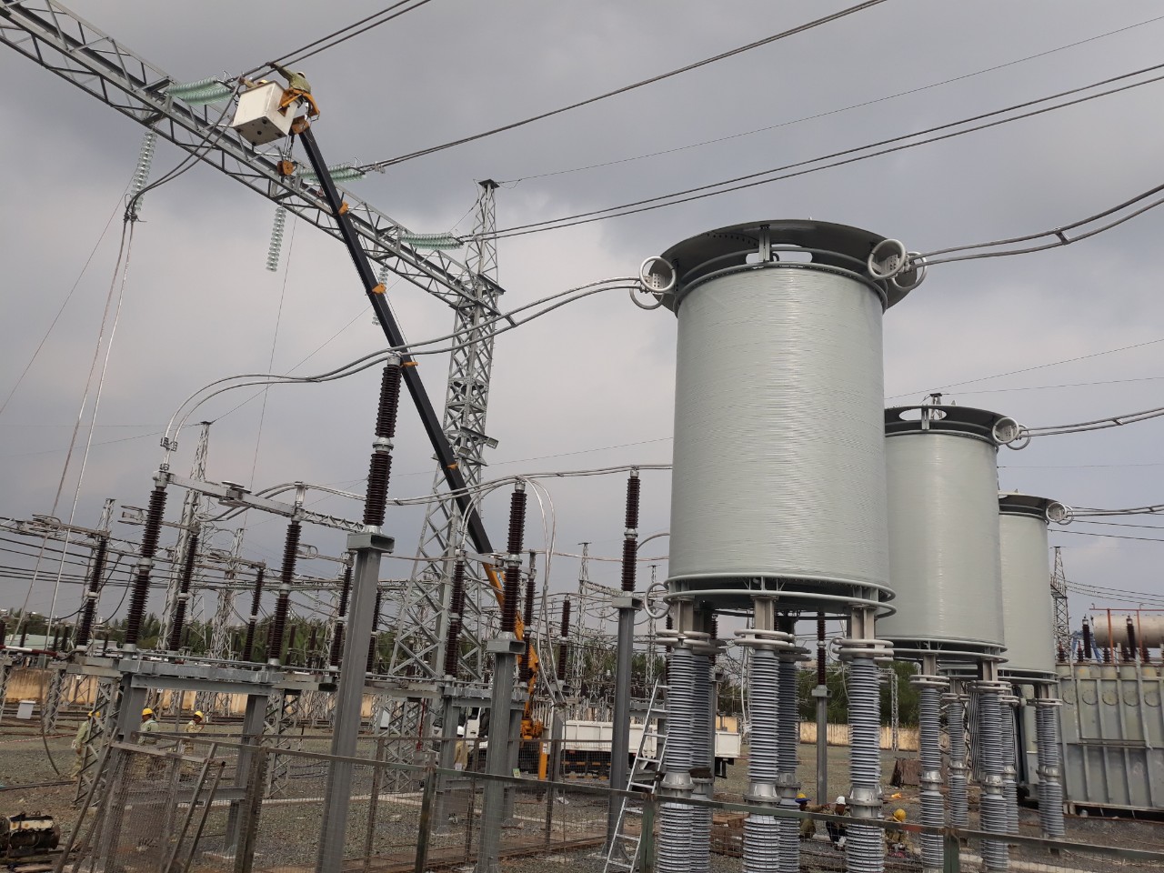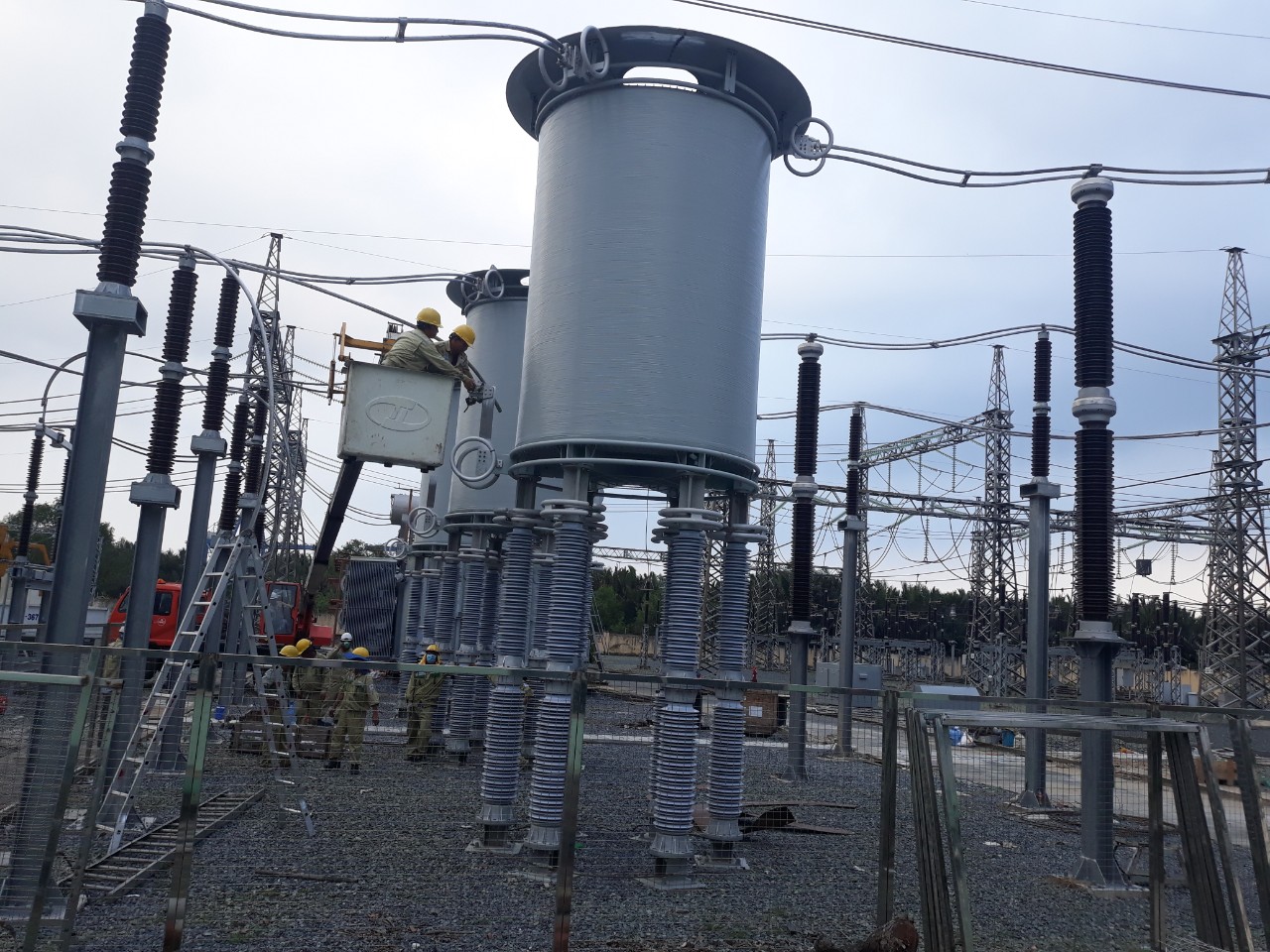 Công nhân TTDVKT4 đang lắp đặt Cuộn kháng KI212.