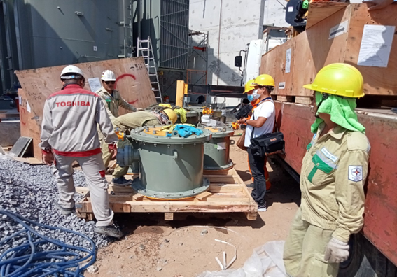 Công ty vận chuyển Nam Đạt đưa MBA AT6 hiệu Toshiba từng pha vào bệ móng chính.