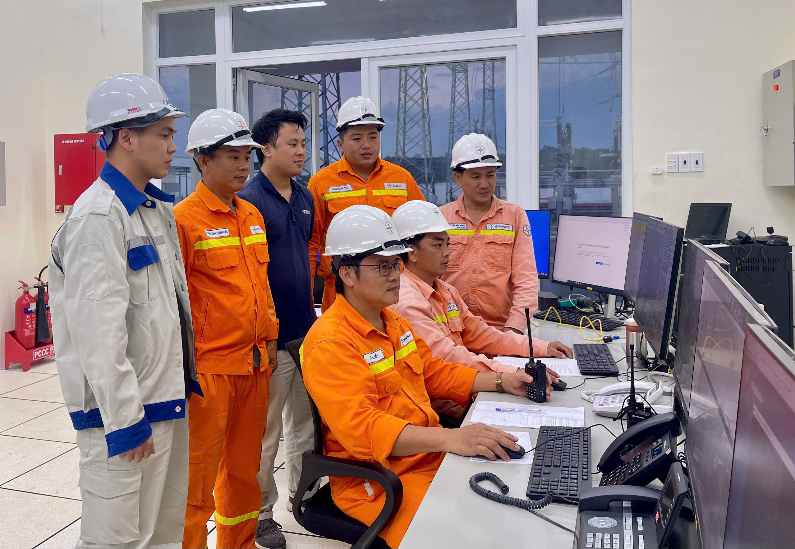 CBCNV tổ TTLĐ Định Quán cùng đơn vị thi công AIT theo dõi thiết bị trên HMI, kiểm tra các bước cuối trước khi thực hiện đóng điện tại hệ thống điều khiển.