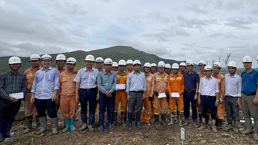 Lãnh đạo EVNNPT, Lãnh đạo Công đoàn EVNNPT thăm hỏi người lao động đang tham gia sửa chữa, khắc phục lưới điện truyền tải do bão số 3 gây ra tại Quảng Ninh
