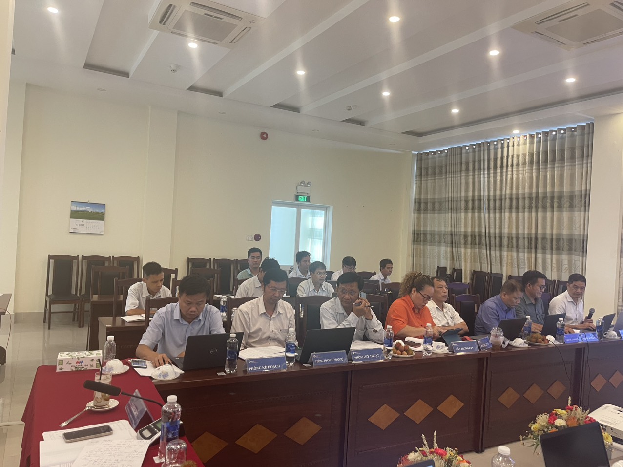 Đồng chí Võ Đình Thủy – Giám đốc Công ty Truyền tải điện 4 (Ngồi bìa trái đối diện màn hình chính) - Chỉ đạo tại buổi làm việc.