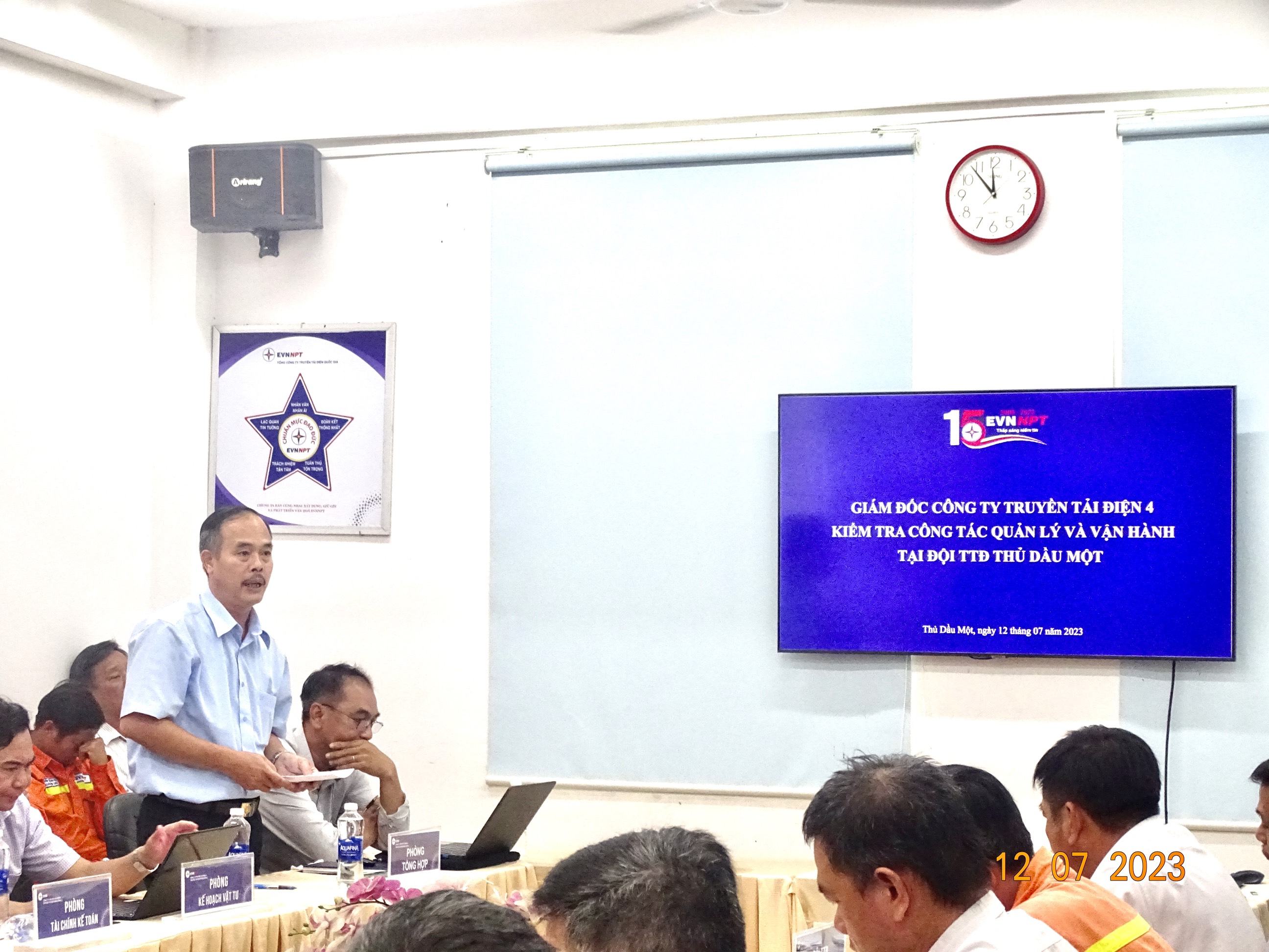 Sau khi kết thúc kiểm tra thực tế trên tuyến, đoàn kiểm tra tiến hành họp kết luận và triển khai nhiệm vụ cho đơn vị. Tại buổi họp, Đội TTĐ Thủ Dầu Một cũng đã trình bày kết quả thực hiện công tác quản lý và công tác vận hành những thuận lợi, khó khăn vướng mắc trong việc triển khai nhiệm vụ của đơn vị trong 6 tháng đầu năm 2023.