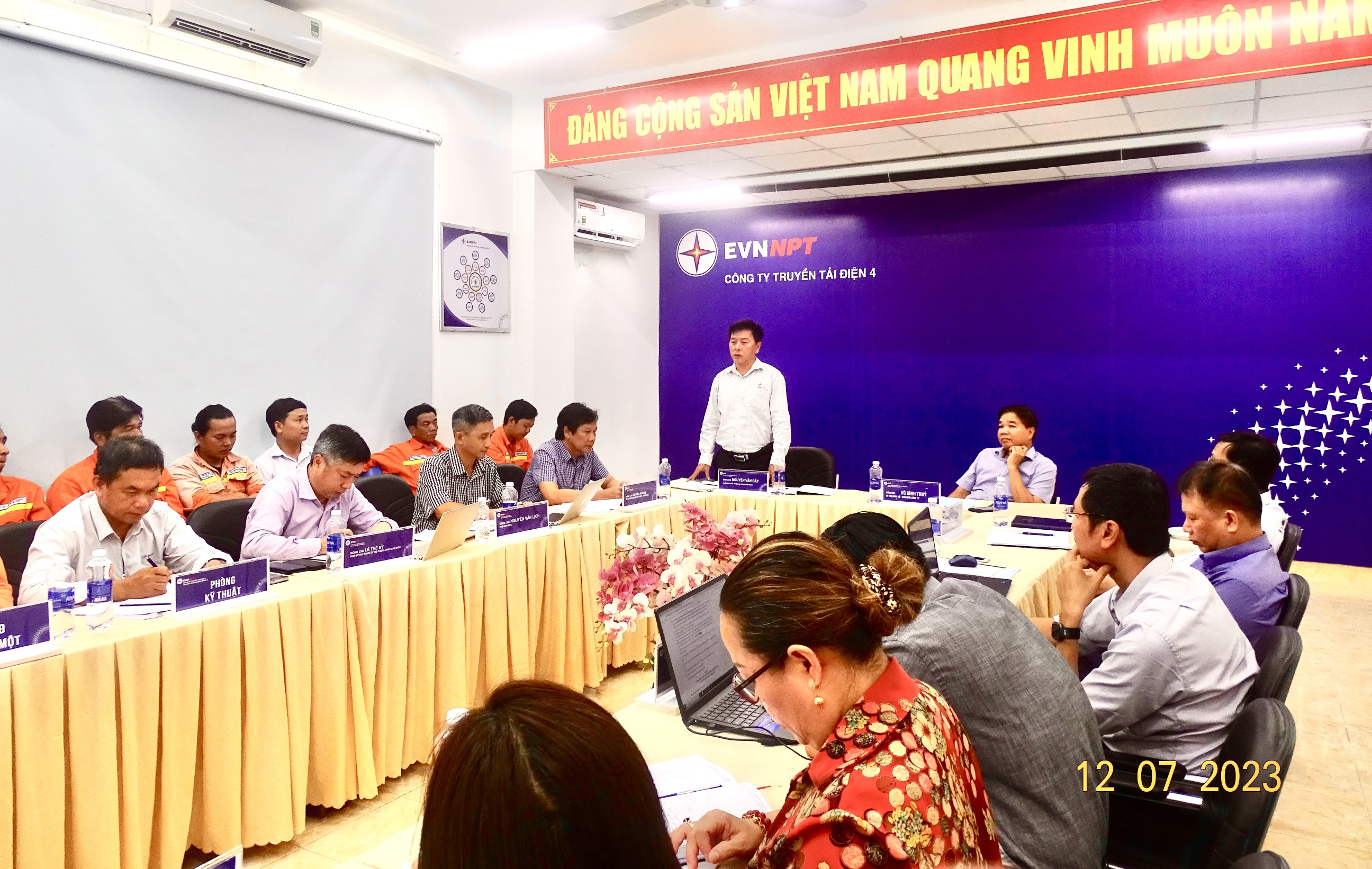 Tham gia đoàn công tác có đồng chí Nguyễn Văn Bảy – Phó Gíám đốc Công ty, đồng chí Huỳnh Hữu Phúc - Trưởng phòng Kỹ thuật, đồng chí Nguyễn Minh Đạt - Trưởng phòng KTTTPC, đồng chí Đống Tiến Long - Trưởng phòng Tổ chức và Nhân sự, đồng chí Phạm Anh Tuấn - Trưởng phòng an toàn, đồng chí Đặng Thị Hải Yến – Phó chánh Văn phòng và các cán bộ đại diện phòng Công ty. Tiếp và làm việc với đoàn PTC4 có các đồng chí trong Ban Giám đốc TTĐMĐ2; Trưởng các phòng Kỹ thuật, phòng Tổng hợp, Tài chính kế toán, Kế hoạch vật tư Đội trưởng Đội TTĐ Bù Đăng, Đồng Xoài, Chơn Thành, Tây Ninh, Đội phó Đội TTĐ Thủ Dầu Một cùng toàn thể CBCNV đội TTĐ Thủ Dầu Một.