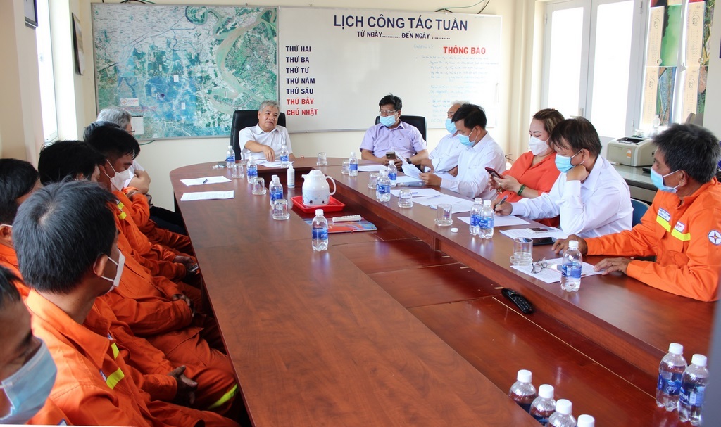 Phát biểu tại buổi làm việc, ông Võ Đình Thủy – Bí thư Đảng ủy, Giám đốc PTC4 đánh giá cao và chúc mừng thành tích đạt được trong năm 2021 của Đội Nhà Bè; đơn vị đã thực hiện hoàn thành tốt nhiệm vụ kép vừa đảm bảo quản lý vận hành lưới truyền tải điện, vừa đảm bảo công tác phòng chống dịch bệnh Covid-19. Lưới truyền tải điện Đội Nhà Bè quản lý thuộc địa bàn Thành phố Hồ Chí Minh là đô thị có tốc độ phát triển cao, nhiều công trình, những dự án lớn được triển khai gần hoặc ngay dưới hành lang bảo vệ đường dây cao áp; những dự án di dời lưới điện, tình hình xây dựng nhà lấn chiếm hành lang đang là vấn đề lớn đối với công tác quản lý vận hành, qua đó tiềm ẩn nhiều nguy cơ ảnh hưởng an toàn vận hành; Giám đốc Võ Đình Thủy mong muốn tập thể CBCNV Đội Nhà Bè phát huy tốt kết quả đạt được, đẩy lùi khó khăn, tăng cường hơn nữa trong công tác kiểm tra nhằm ngăn chặn kịp thời các nguy cơ ảnh hưởng vận hành an toàn lưới điện, đặc biệt là đảm bảo vận hành an toàn đường dây cáp ngầm 220kV Nhà Bè – Tao Đàn nhằm đảm bảo cung cấp điện cho khu vực trung tâm quan trọng của Thành phố Hồ Chí Minh. Giám đốc Võ Đình Thủy còn chỉ đạo TTĐHCM phối hợp cùng các Phòng chức năng PTC4 xem xét trang bị, cải thiện cơ sở vật chất tại Đội Nhà Bè nhằm tạo điều kiện thuận lợi nhất để CBCNV yên tâm công tác và đồng thời nâng cao hiệu quả thực hiện nhiệm vụ của CBCNV, góp phần vào quá trình phát triển chung của Công ty..