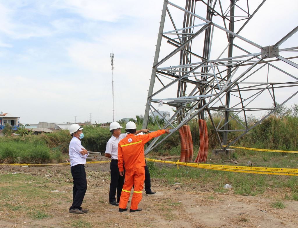 Ông Võ Đình Thủy (thứ hai từ trái sang) – Bí thư Đảng ủy, Giám đốc PTC4 trực tiếp kiểm tra tại hiện trường đường dây 220kV Phú Mỹ - Nhà Bè & Nhơn Trạch - Nhà Bè