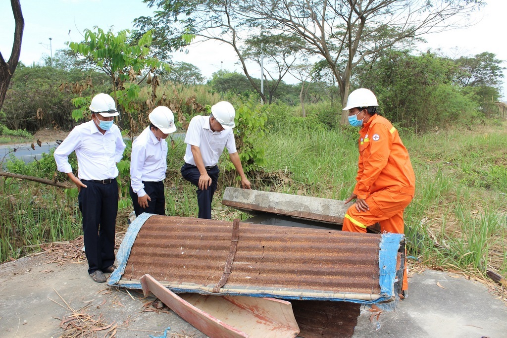 Ông Võ Đình Thủy (thứ ba từ trái sang) – Bí thư Đảng ủy, Giám đốc PTC4 trực tiếp kiểm tra tại hiện trường hầm cáp ngầm mới tại khu vực Metro City thuộc đường dây 220kV Phú Mỹ - Nhà Bè