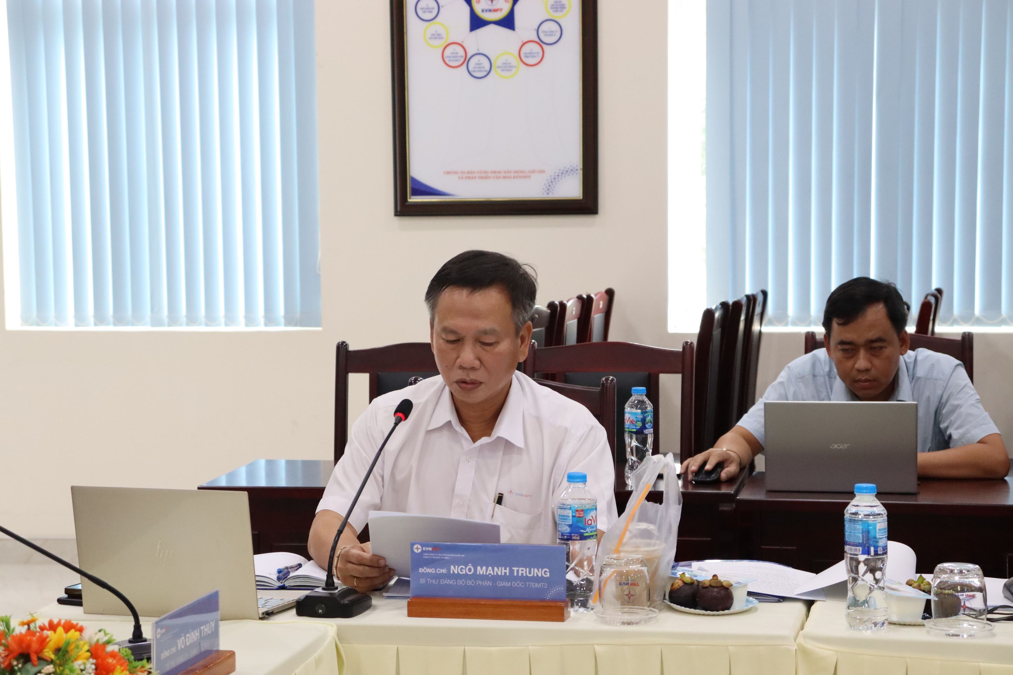 Ông Ngô Mạnh Trung - Bí thư Đảng bộ bộ phận, Giám đốc Truyền tải điện miền Tây 2 trình bày báo cáo tại buổi làm việc