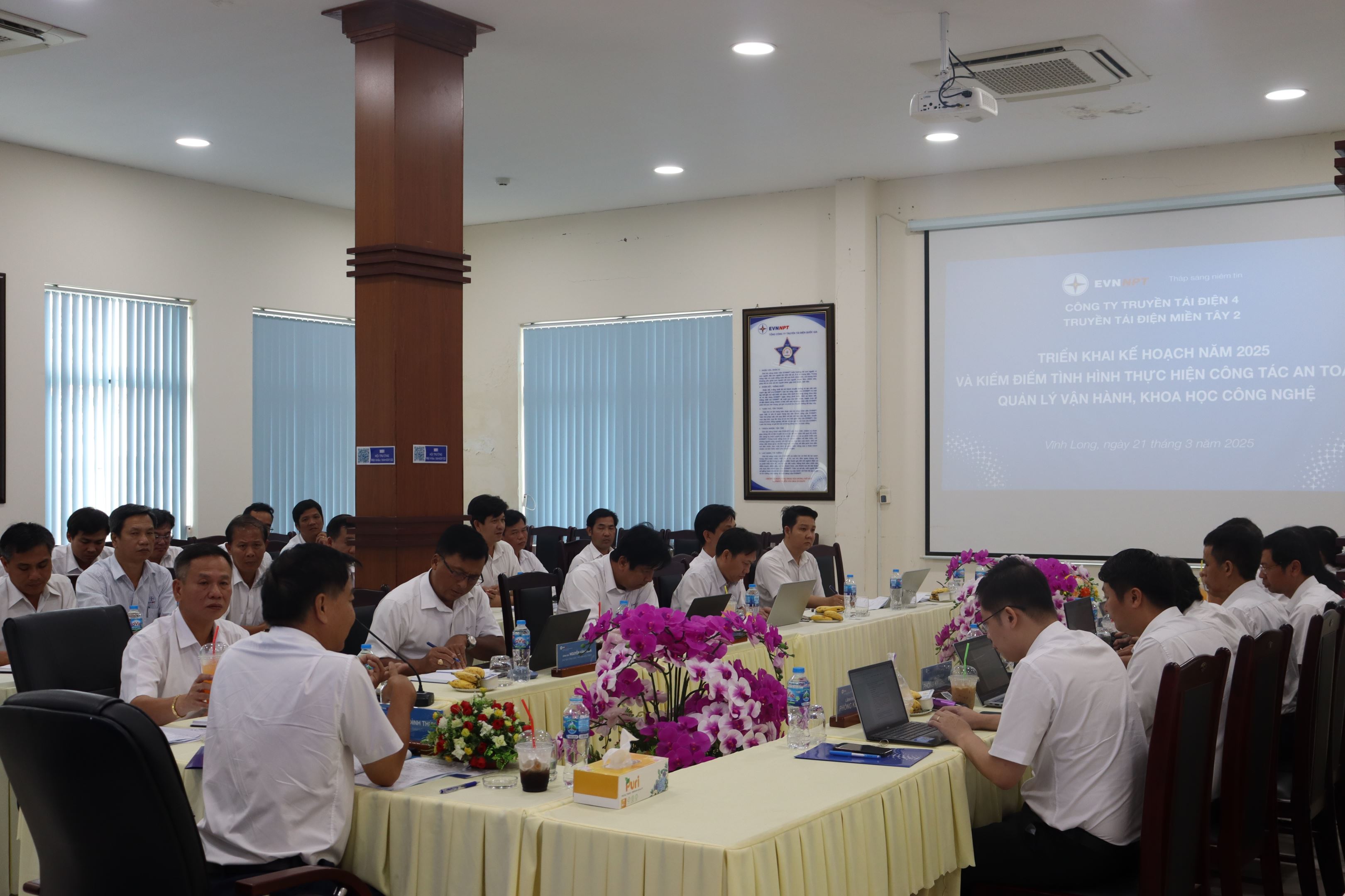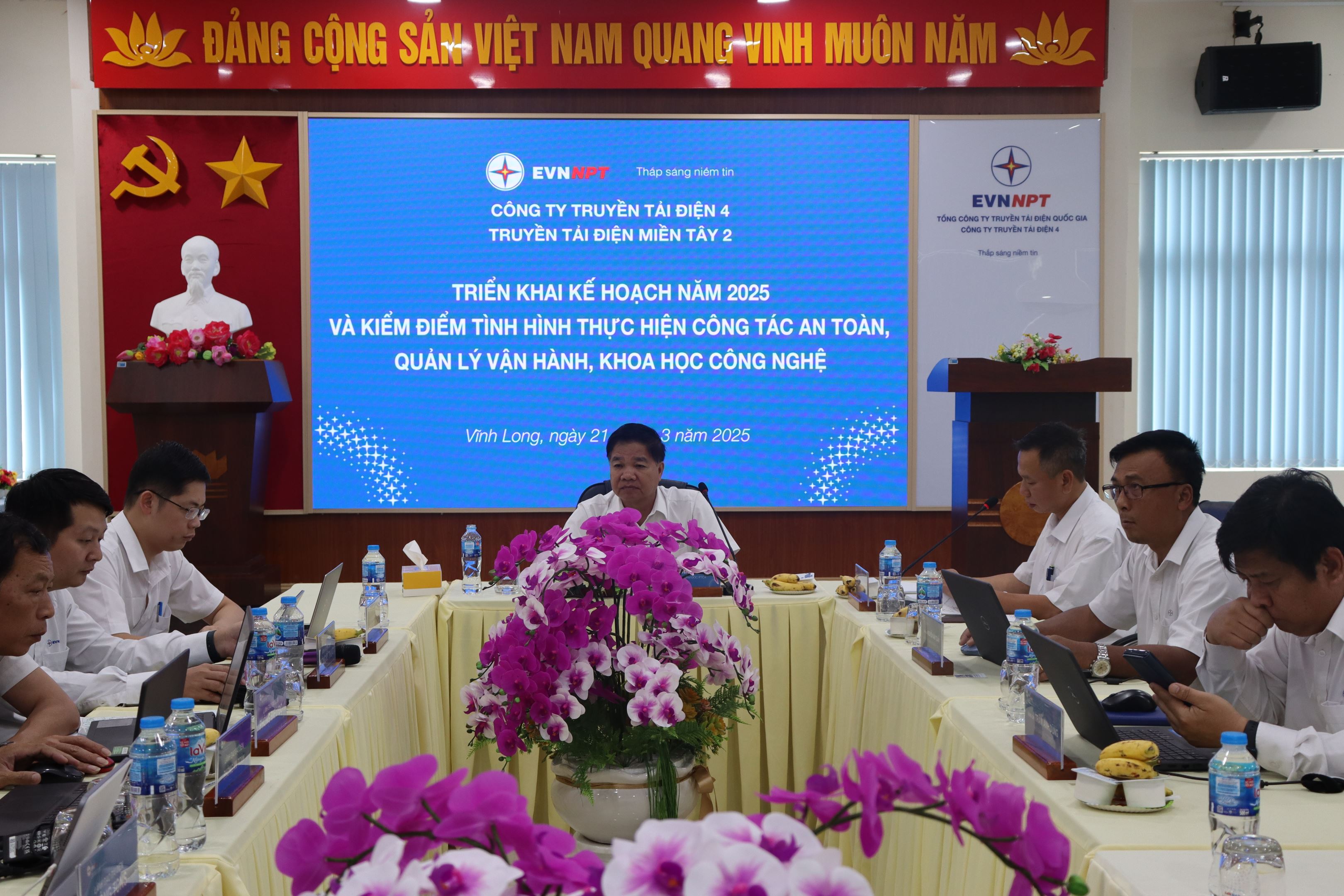 Tại cuộc họp, sau khi nghe TTĐMT2 báo cáo tình hình triển khai cũng như các giải pháp thực hiện kế hoạch nhiệm vụ trong năm 2025 và lắng nghe các ý kiến phát biểu của lãnh đạo các phòng chức năng, ông Võ Đình Thủy - Bí thư Đảng ủy, Giám đốc PTC4 đã đánh giá cao về những nỗ lực vượt khó khăn của tập thể CBCNV TTĐMT2 đã đạt được kết quả khả quan trong năm 2024 và 2 tháng đầu năm 2025. Giám đốc PTC4 yêu cầu TTĐMT2 cần đề ra những giải pháp thiết thực hơn nhằm nâng cao hiệu quả công việc, kiên quyết khắc phục dứt điểm các tồn tại hạn chế, trong đó chú ý các nội dung: Tăng cường công tác đào tạo nâng cao năng lực trình độ tay nghề cho lực lượng lao động trực tiếp để đảm bảo QLVH lưới điện an toàn, chú trọng tổ chức tập huấn cho các công nhân mới được tuyển dụng nhằm đáp ứng yêu cầu công tác; Chủ động xây dựng các phương án, tình huống xử lý sự cố, nhận diện rủi ro trong công tác quản lý vận hành; Thường xuyên tuyên truyền bảo vệ hành lang an toàn lưới điện cao áp; Nghiêm túc áp dụng hệ thống nhận diện thương hiệu của EVN và EVNNPT.