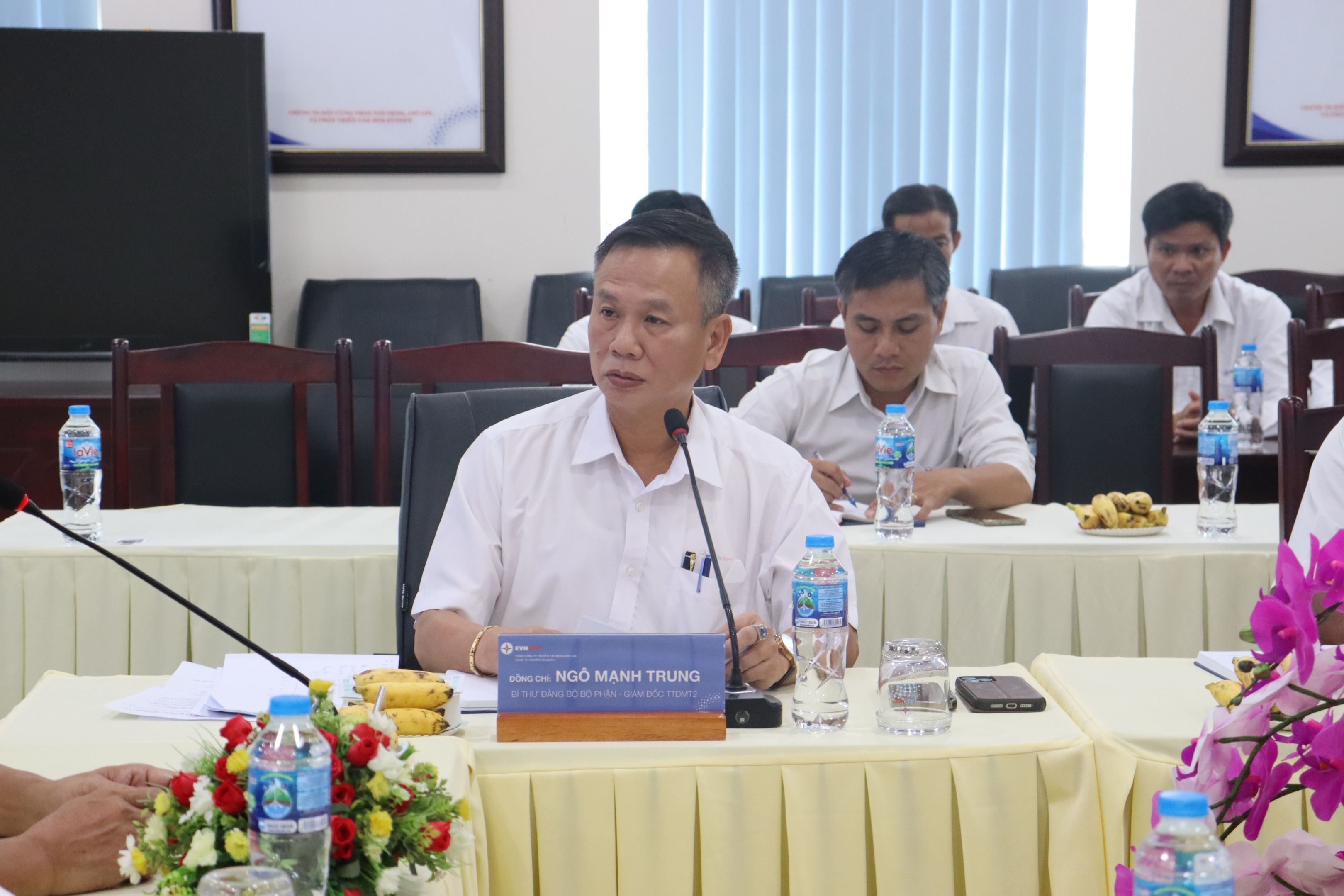 Tại buổi làm việc, ông Ngô Mạnh Trung - Bí thư Đảng bộ bộ phận, Giám đốc TTĐMT2 đã báo cáo tình hình triển khai kế hoạch sản xuất kinh doanh năm 2025 của đơn vị: theo đó, về chỉ tiêu sản lượng điện truyền tải năm 2025 PTC4 giao 10.819 triệu kWh, trong 2 tháng đầu năm 2025, sản lượng thực hiện 1.606 triệu kWh, đạt 14,84%. Dựa theo tốc độ tăng trưởng 02 tháng đầu năm 2025, dự kiến sản lượng năm 2025 sẽ là 11.084,5 triệu kWh, đạt 102,4% so với kế hoạch dự kiến giao (10.819 triệu kWh).