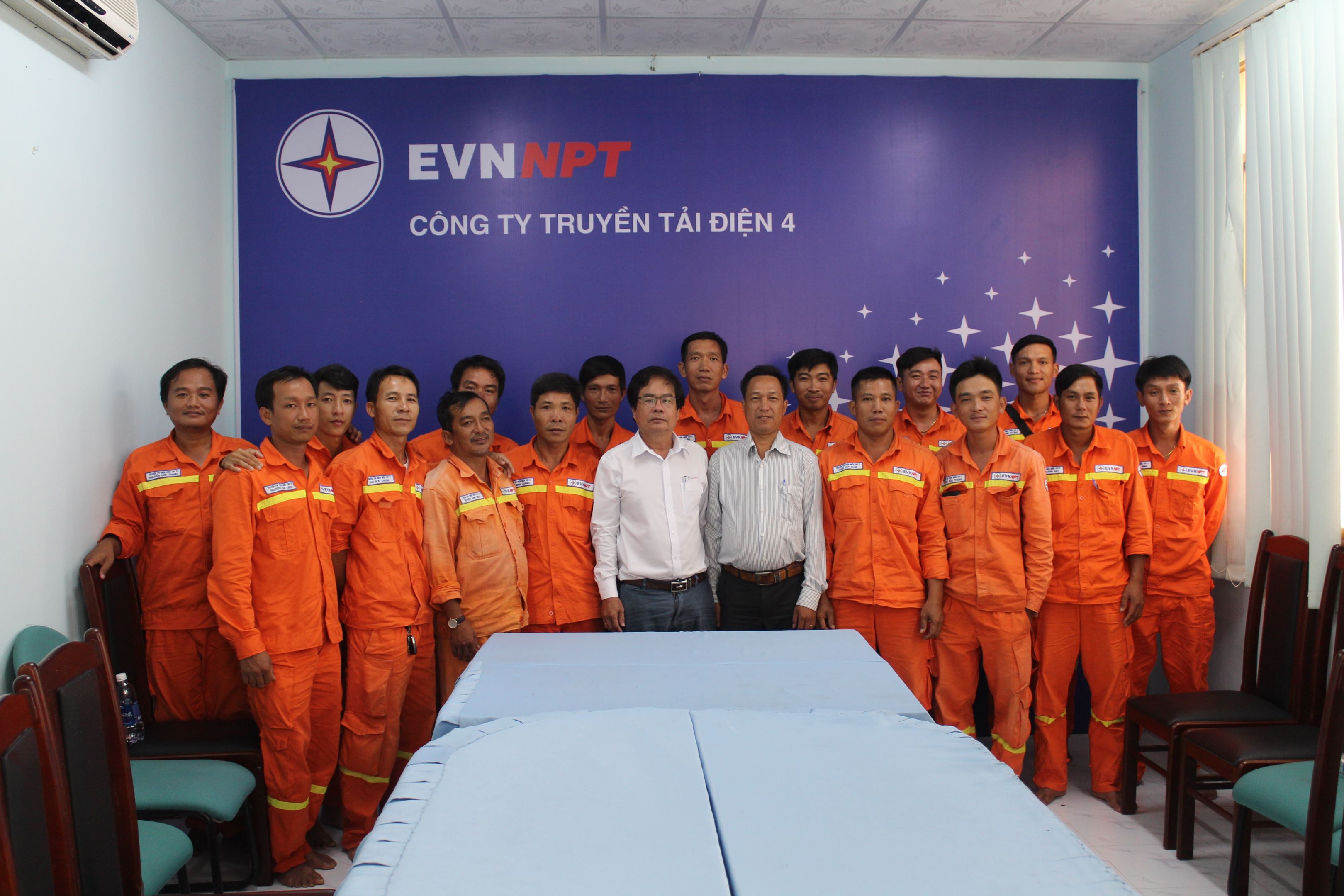 Đồng chí Lê Xuân Thụ - Giám đốc TTĐMT3 chụp hình lưu niệm với CBCNV Đội Truyền tải điện Rạch Giá