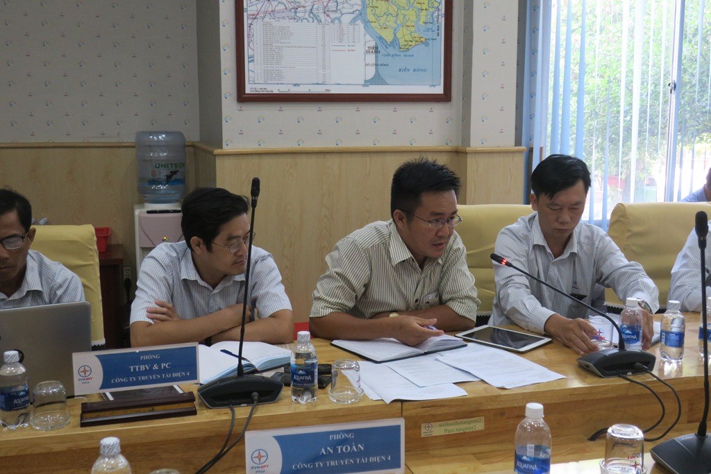 ông Nguyễn Quang Thảo (thứ 2 từ phải sang) – Phó Giám đốc TTĐHCM trình bày về công tác PCCC hành lang đường dây