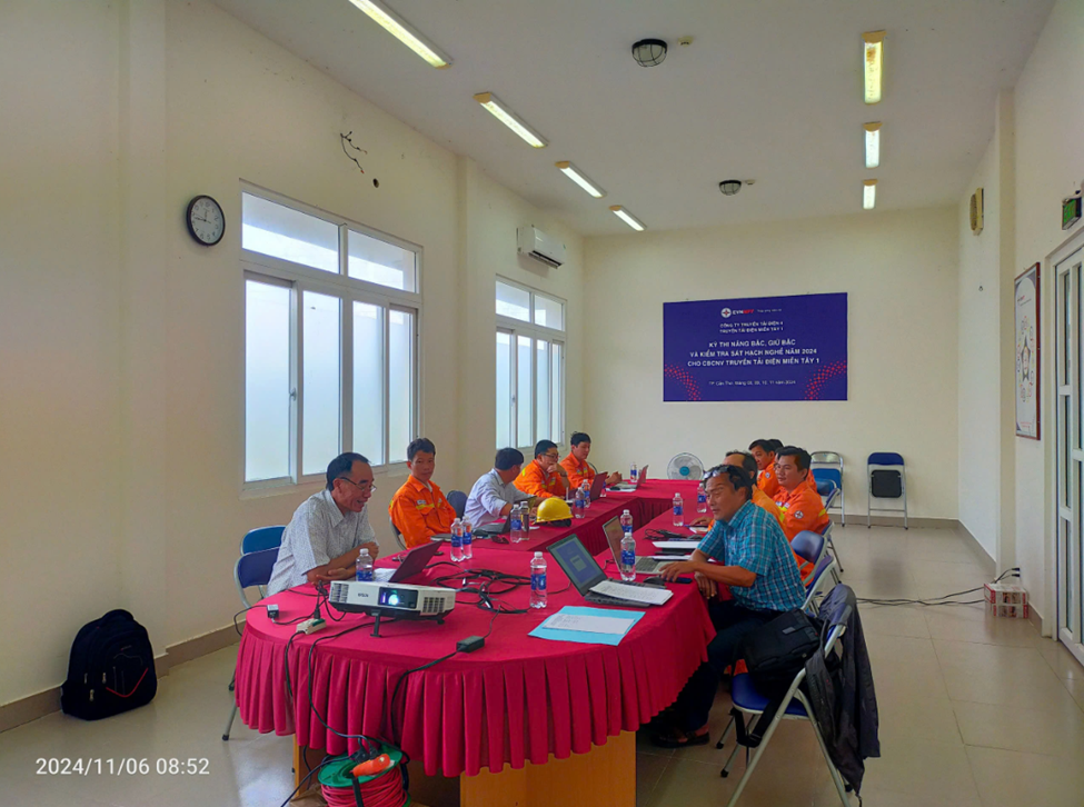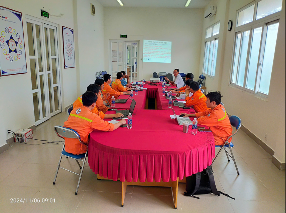 Anh Nguyễn Văn Tấn bồi huấn, kiểm tra sát hạch phiếu thao tác năm 2024 tại Truyền tải điện miền Đông 1.