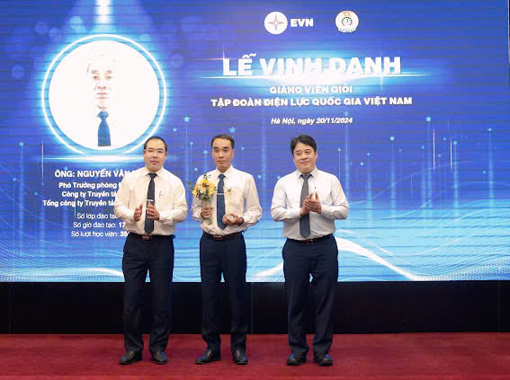 Anh Nguyễn Văn Tấn được biểu dương tại Lễ vinh danh Giảng viên nội bộ giỏi của Tập đoàn Điện lực Quốc gia Việt Nam.