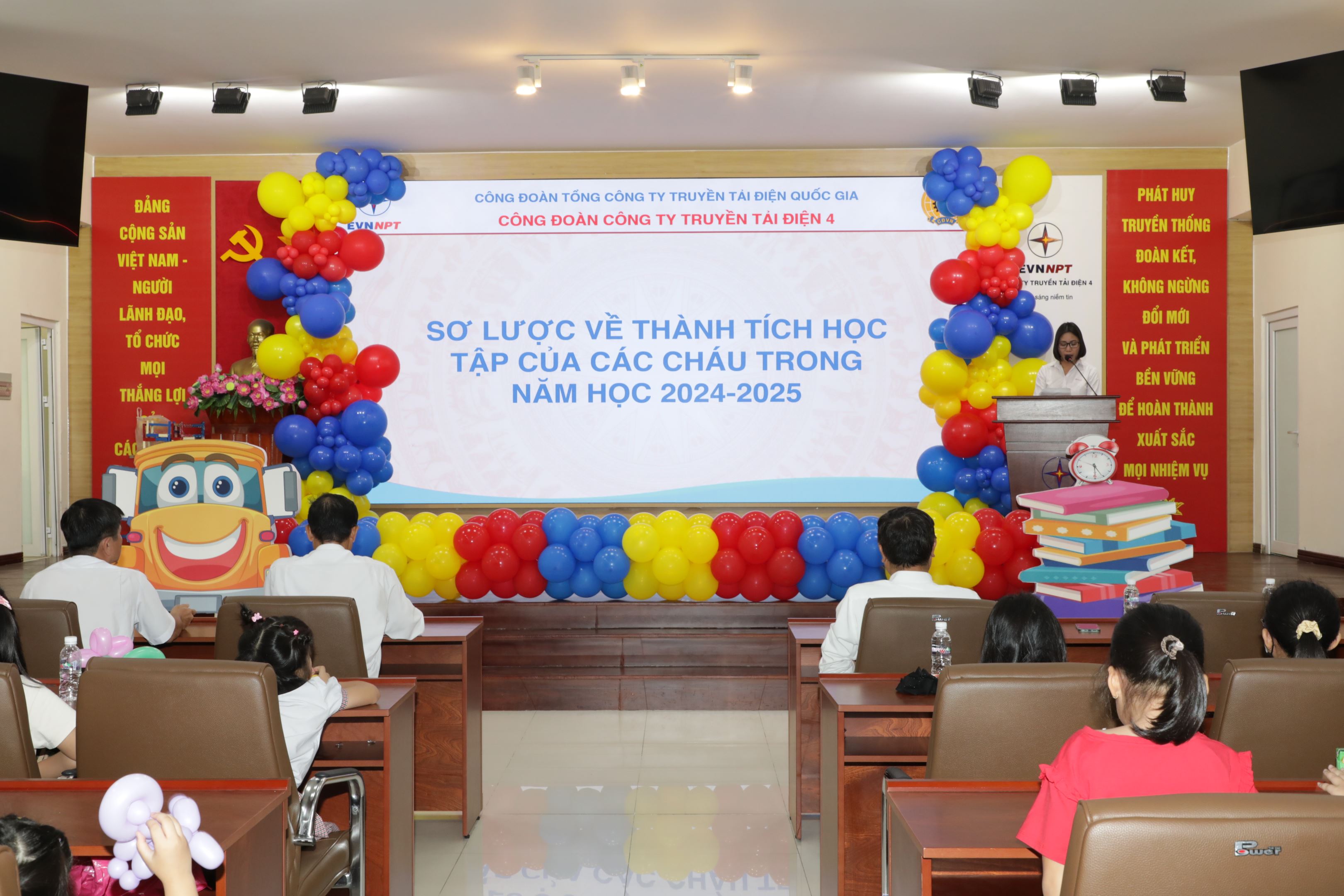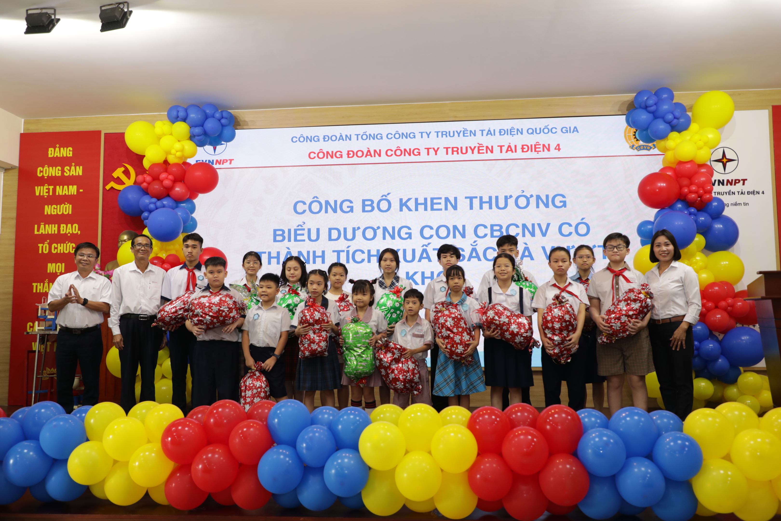 Điểm nhấn đặc biệt của chương trình là phần tuyên dương và trao 17 phần quà tặng cho các cháu học sinh xuất sắc, đạt giải cao trong các kỳ thi học sinh giỏi các cấp, các cuộc thi năng khiếu, sáng tạo, thể thao, nghệ thuật. Trong tổng số 1.628 cháu là con CBCNV Công ty Truyền tải điện 4, có hơn 800 cháu đạt danh hiệu học sinh giỏi toàn diện, trong đó có nhiều em đạt giải cao trong các kỳ thi học sinh giỏi cấp quận, cấp thành phố, các giải thể thao và nghệ thuật. Số tiền thưởng tuy không nhiều nhưng thể hiện được tình yêu thương, sự đồng hành chia sẻ của Ban lãnh đạo cùng với Công đoàn Công ty dành cho những mầm non của Đất nước, những trụ cột tương lai. Thành tích học tập của các con là niềm tự hào không chỉ của gia đình các cháu mà còn là niềm vui chung của đại gia đình Công ty Truyền tải điện 4.