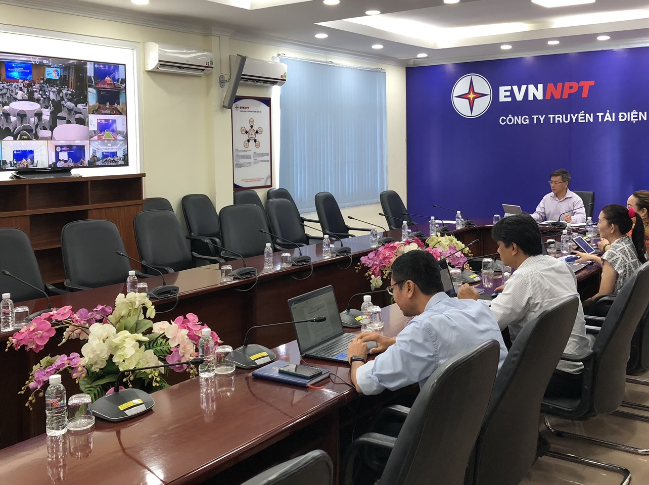 Toàn cảnh buổi tham dự Hội nghị tổng kết công tác VHDN EVN giai đoạn 2016 - 2021, triển khai hành trình Văn hóa EVN giai đoạn 2022 - 2025 (qua kết nối truyền hình trực tuyến) tại PTC4.