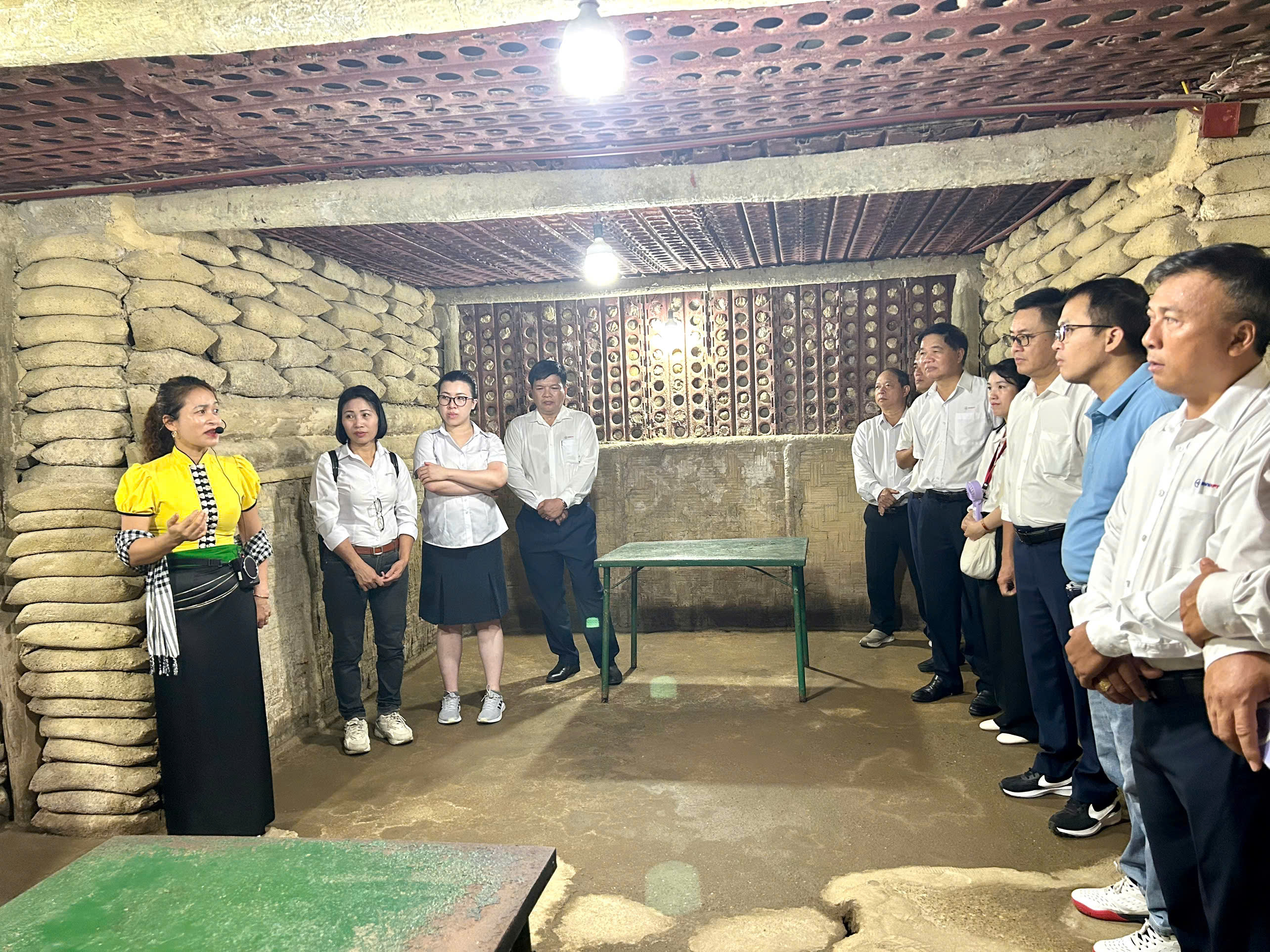 Đoàn Đảng bộ PTC4 tham quan và nghe thuyết minh tại Sở chỉ huy chiến dịch Điện Biên Phủ.