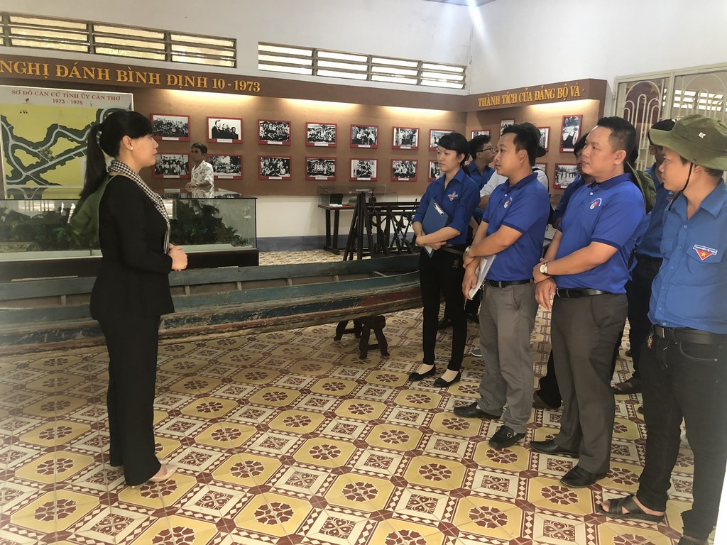 Vượt qua chặng đường hơn 50km Đoàn viên thanh niên đến Khu di tích căn cứ Tỉnh ủy Cần Thơ tọa lạc tại xã Phương Bình, huyện Phụng Hiệp, tỉnh Hậu Giang, lối dẫn vào là là một con đường gợp bóng cây xanh. Được sự hỗ trợ của Ban quản lý khu di tích, chị thuyết minh Trần Thị Thủy Tiên ân cần mời cả đoàn vào khu tưởng niệm, tại đây đoàn viên thanh niên được biết: Khu di tích tỉnh ủy Cần Thơ được xây dựng năm 1972 có diện tích gần 09 ha với 11 hạng mục, nơi đây đã tái hiện lại những khu hoạt động, sinh hoạt và làm việc của Tỉnh ủy Cần Thơ; Tại khu tưởng niệm trưng bày các hiện vật chiến đấu của quân dân ta như súng trường, B40 và các vũ khí máy móc thu được của địch lúc bấy giờ; Di chuyển đến khu sinh hoạt và làm việc đến Hội trường của các Bác Thường vụ tỉnh ủy đã họp và đưa ra các quyết sách dẫn đến thắng lợi trong Hội nghi “Đánh bình định” vào tháng 10/1973 diễn ra trong 07 ngày đã đánh bại kế hoạch “Bình định mùa khô” của địch Chiến thắng mở màn cho các trận thắng liên tiếp tiêu diệt hàng loạt đồn bốt địch ở tuyến Lái Hiếu, Búng Tàu, Nước Trong, Nàng Mau và 170 đồn bốt địch, bắn chìm 31 tàu chiến, bắn cháy 104 xe M113, bắn và phá hủy 26 máy bay của địch, làm tiền đề cho quân dân Cần Thơ xông lên tổng tấn công và nổi dậy giải phóng hoàn toàn tỉnh Cần Thơ, góp phần đại thắng 30/4/1975 Giải phóng miền Nam thống nhất đất nước.