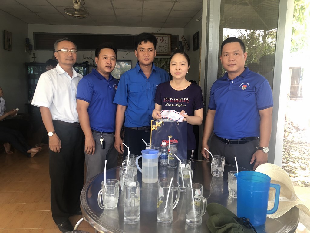 Tiếp đến Đoàn di chuyển đến Thị xã Ngã Bảy, Tỉnh Hậu Giang thăm hỏi tặng 01 suất quà cho gia đình đoàn viên Đỗ Xuân Hoà có hoàn cảnh khó khăn, hiện vợ anh Hòa đang mắc bệnh hiểm nghèo và đang điều trị căng bênh ung thư tuyến giáp; Bên cạnh đó Bí thư đoàn Công ty, đại diện tập thể trong đơn vị cũng tặng quà và động viên đồng chí Hòa yên tâm công tác.