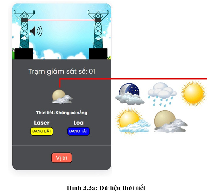 Khi thời tiết thay đổi các biểu tượng trên wesite sẽ thay đổi để người quản lý có thể theo dõi được thời tiết tại vị trí đặt trạm giám sát (Hình 3.3a).