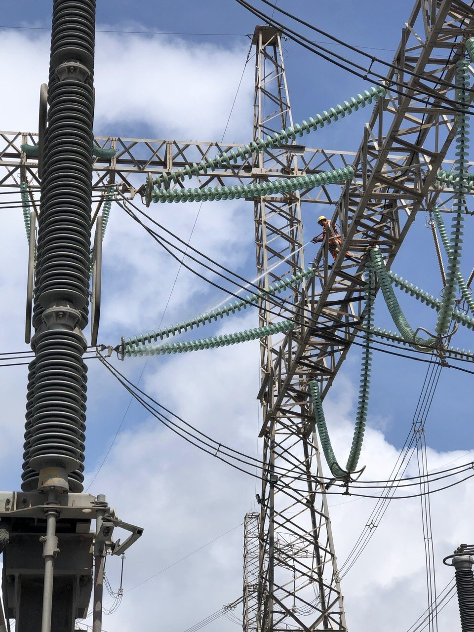 vệ sinh chuỗi cách điện Hotline tại TBA 500kV Duyên Hải năm 2023 .