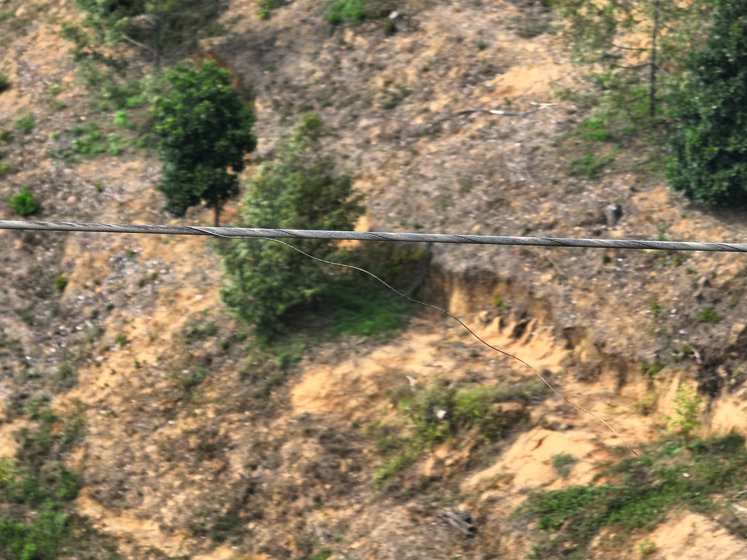 Tưa dây chống sét tại khoảng cột 598-599 (5203-5204) đường dây 500kV Xuân Thiện – EA Súp - Chơn Thành được UAV phát hiện tháng 4/2024.