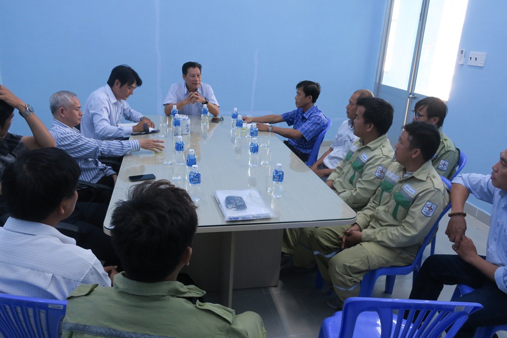 Ông Bùi Văn Hoàng (ngồi giữa) – Giám đốc TTĐHCM đến thăm hỏi, động viên CBCNV trạm 220kV Cần Đước năm 2019.