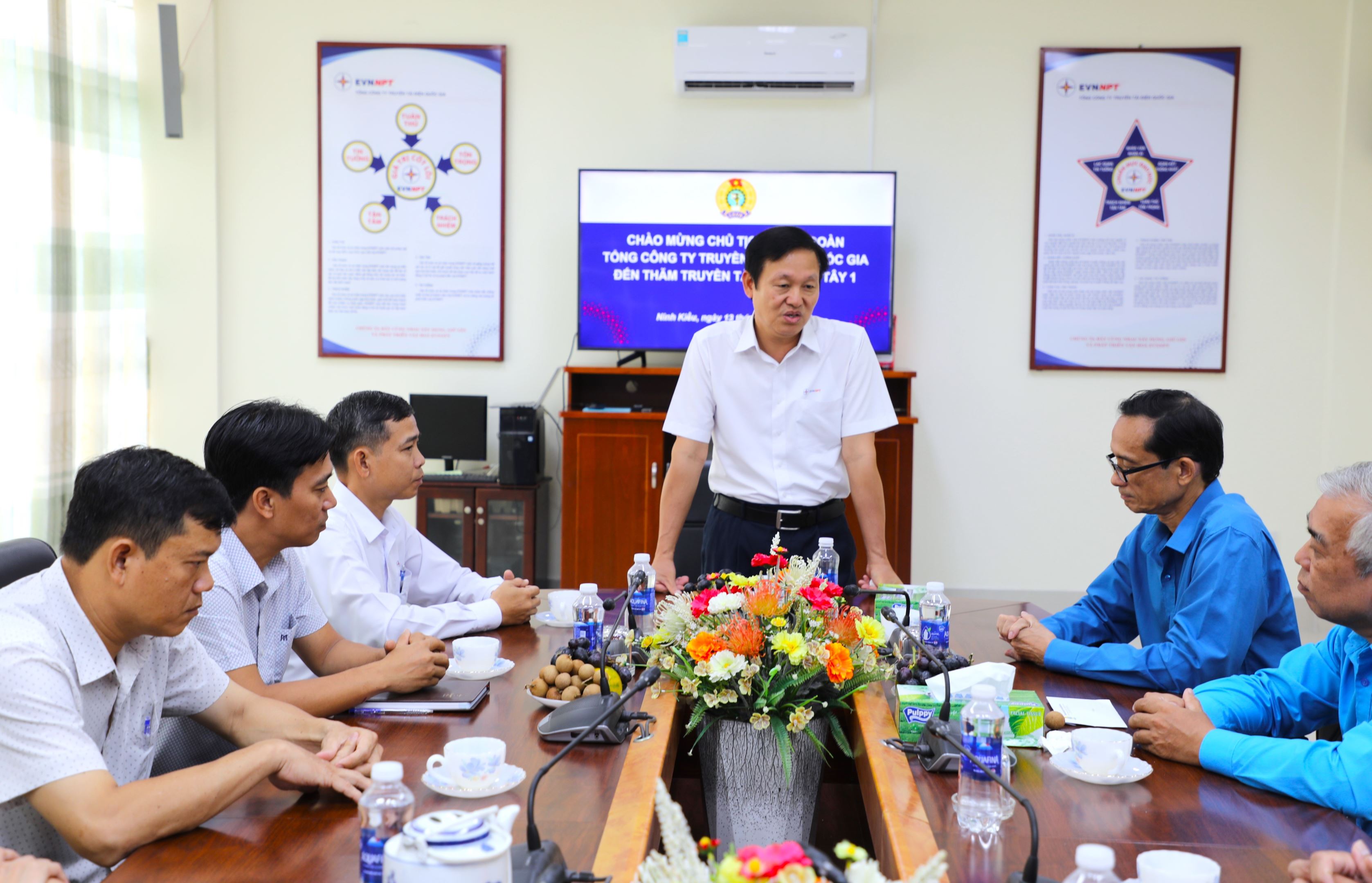 Ông Trịnh Tuấn Sơn, Chủ tịch Công đoàn EVNNPT nhân chuyến công tác đến thăm, gặp gỡ CNVCLĐ Truyền tải điện miền Tây 1.