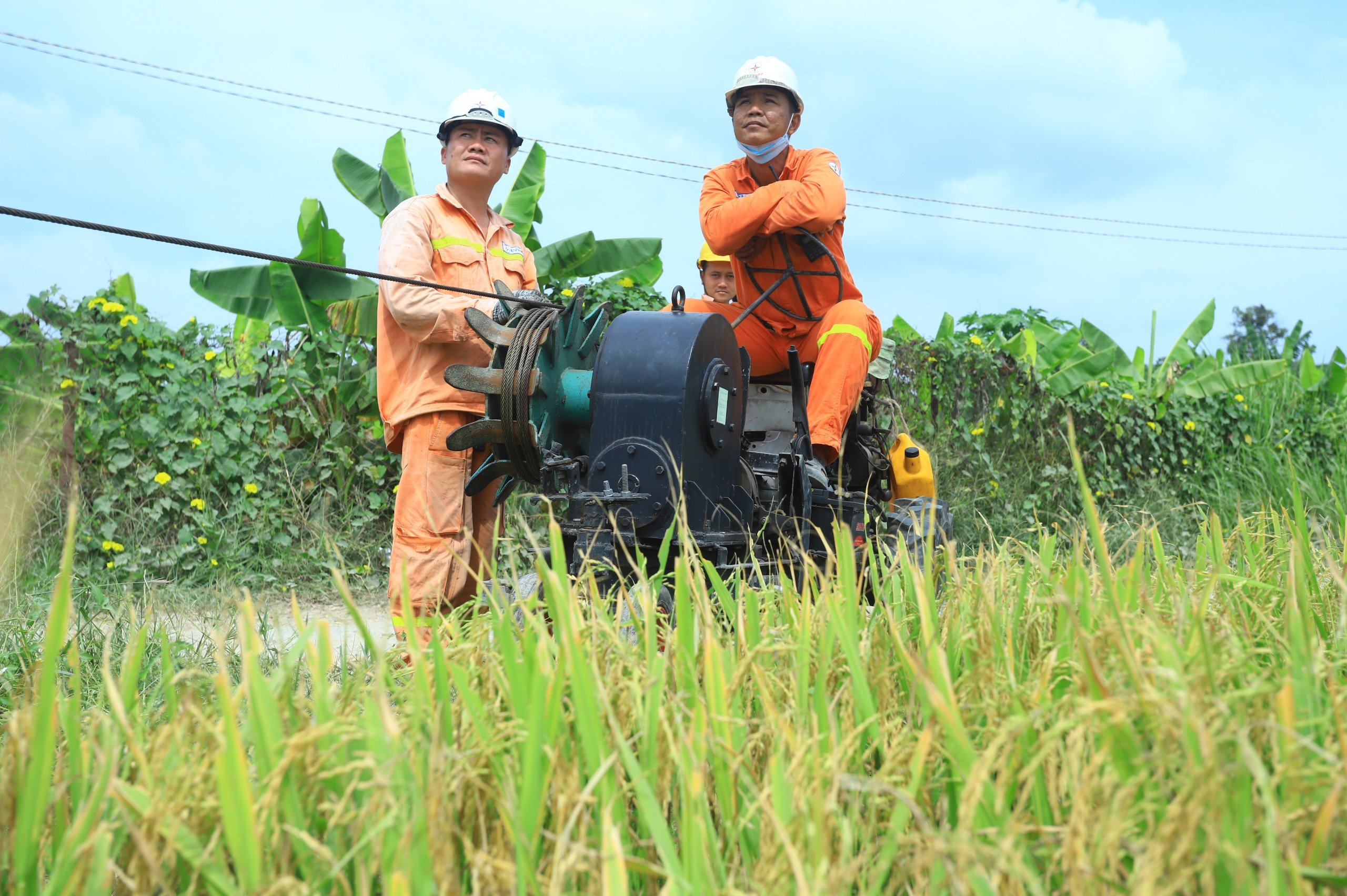 Sử dụng máy tời để thi công kéo dây chống sét