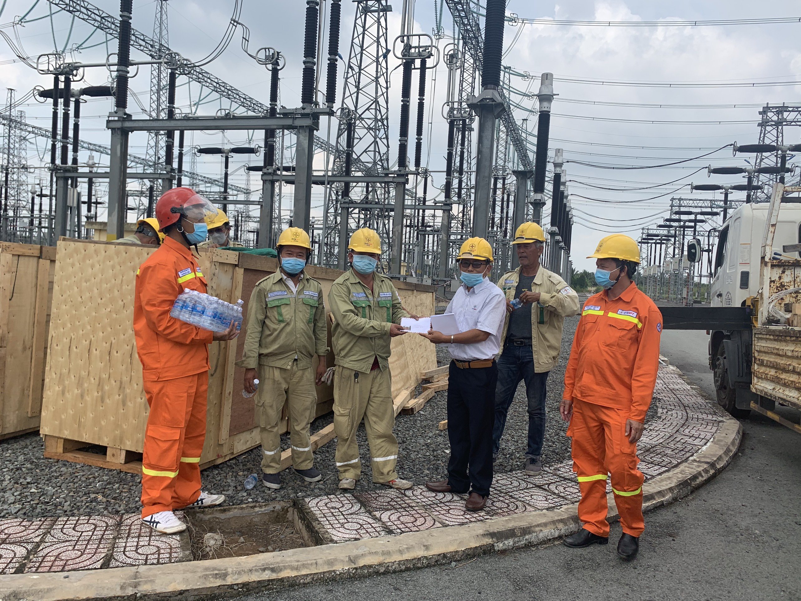 Công đoàn Truyền tải điện Miền Tây 2 đến thăm hỏi tập thể CBCNV Trạm biến áp 500kV Mỹ Tho và các đơn vị phối hợp thi công tại công trường.
