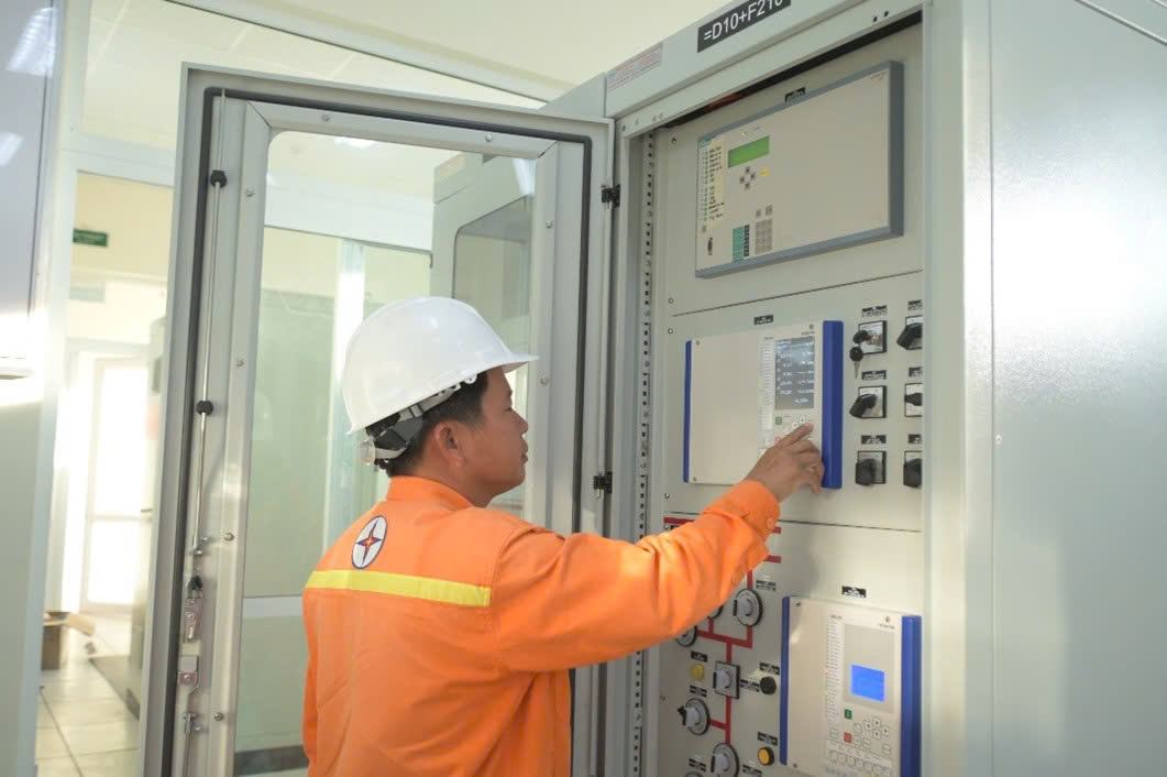 Nhân viên Đội DVKT Miền Tây 1 đang kiểm tra các thông số Rơ le trước khi đóng điện.