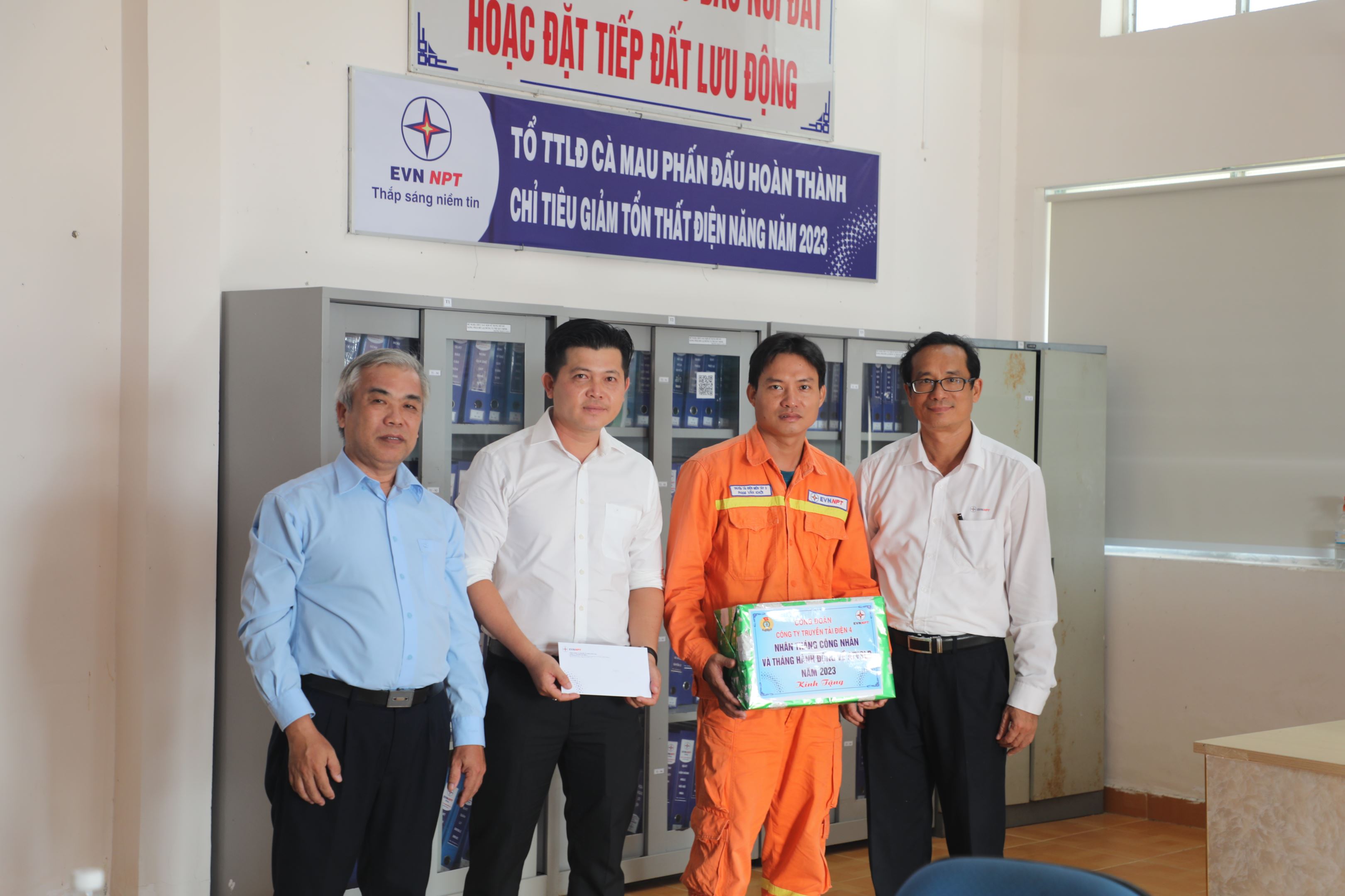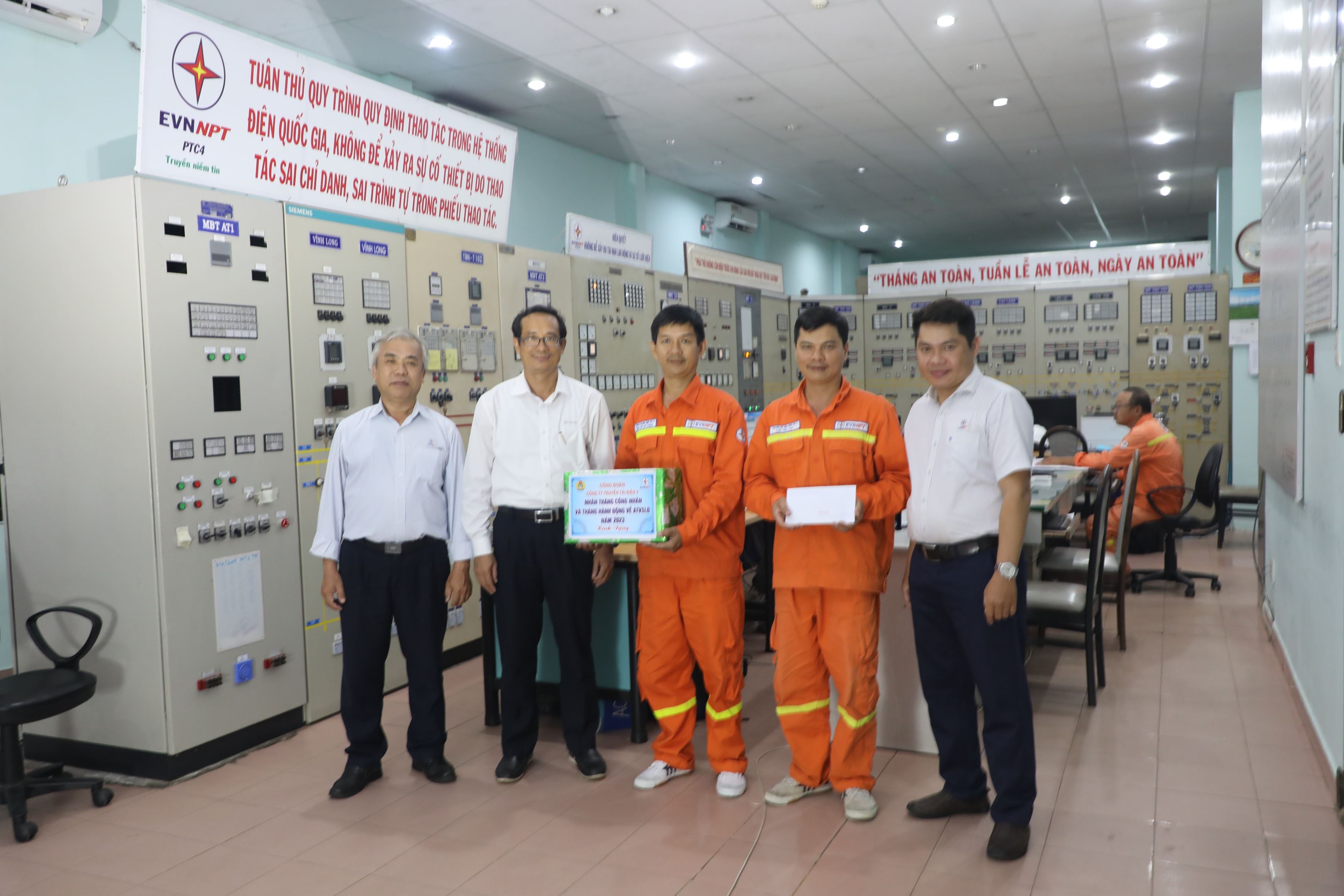 Ông Nguyễn Phương Nam, Chủ tịch Công đoàn Công ty thăm hỏi tặng quà Trạm biến áp 220kV Cai Lậy thuộc TTĐ miền Tây 2