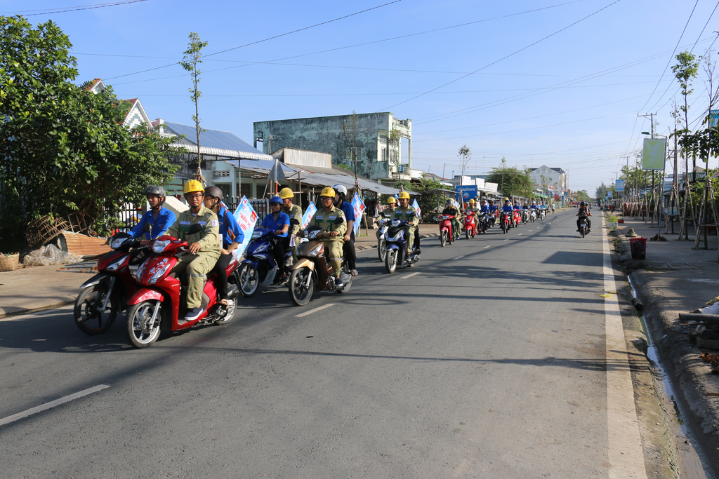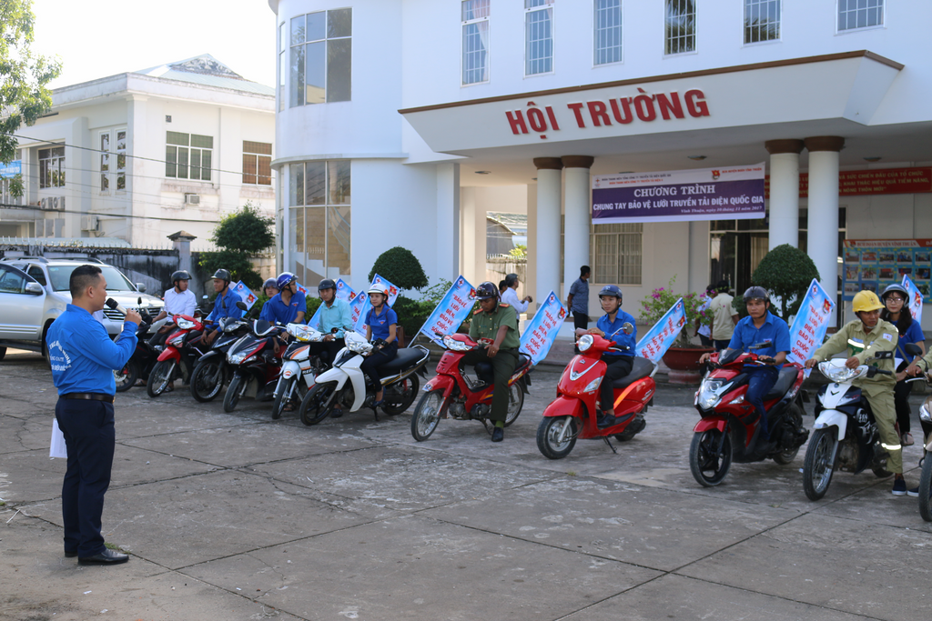 Đoàn xe tham gia tuyên truyền lưu động đi qua cung đường chính của huyện đông dân cư và gần lưới điện cao áp. Điều đặc biệt của đoàn xe là sự kết hợp hài hòa giữa sắc áo xanh oliu của người lính truyền tải và sắc áo xanh thanh niên của ĐVTN huyện Vĩnh Thuận. Đoàn xe tuyên truyền gồm 25 xe gắn máy có mang cờ phướn với các thông điệp ngắn gọn, dễ nhớ: “Bảo vệ lưới điện - Bảo vệ cuộc sống”; xe ôtô trang trí nội dung tuyên truyền và phát thanh ngắn gọn trích dẫn các quy định của pháp luật về bảo vệ an toàn lưới điện cao áp, đoàn tuyên truyền còn được sự hộ tống của lực lượng cảnh sát giao thông huyện Vĩnh Thuận, đã tạo nên không khí thu hút được sự quan tâm của đông đảo người dân, học sinh trên địa bàn.