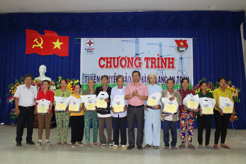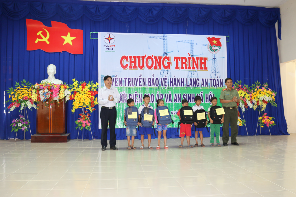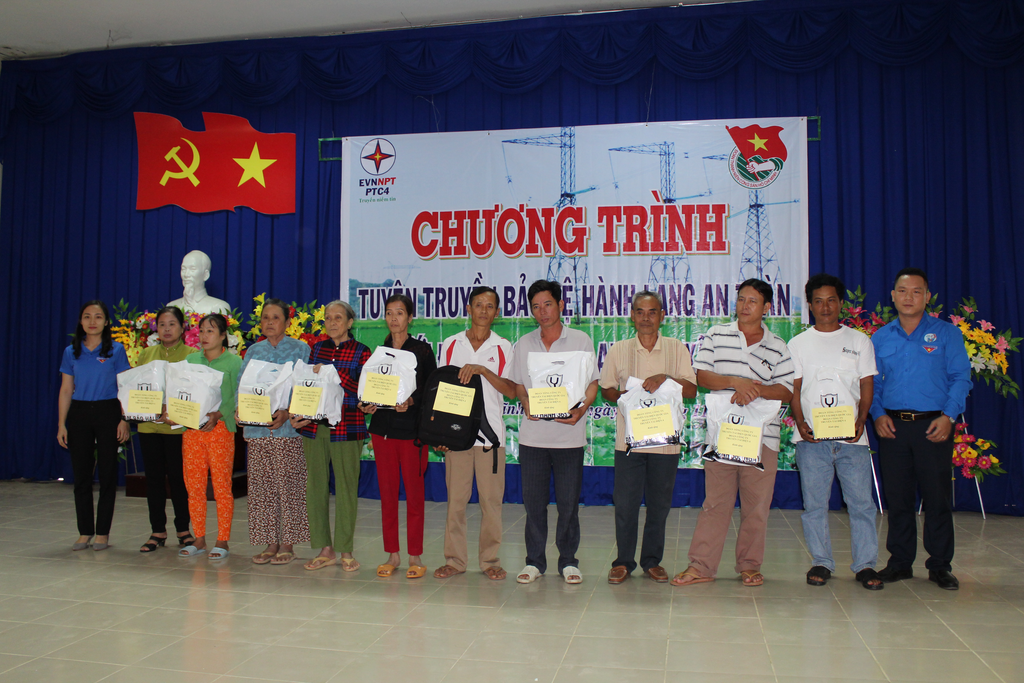 Trong chương trình, Đoàn Thanh niên PTC4 đã trao 20 phần quà cho các em học sinh nghèo vượt khó, học giỏi và 20 phần quà cho các hộ gia đình chính sách, hộ gia đình khó khăn, chấp hành tốt và có những hỗ trợ tích cực trong công tác bảo vệ an toàn lưới điện cao áp trên địa bàn huyện Vĩnh Thuận. Và với 500 quyển tập học sinh in nội dung tuyên truyền, hơn 500 tờ rơi tuyên truyền được phát ra sẽ luôn đi theo em học sinh và bà con trong một thời gian dài, giúp cho hiệu quả tuyên truyền được sâu rộng và lâu dài hơn.
