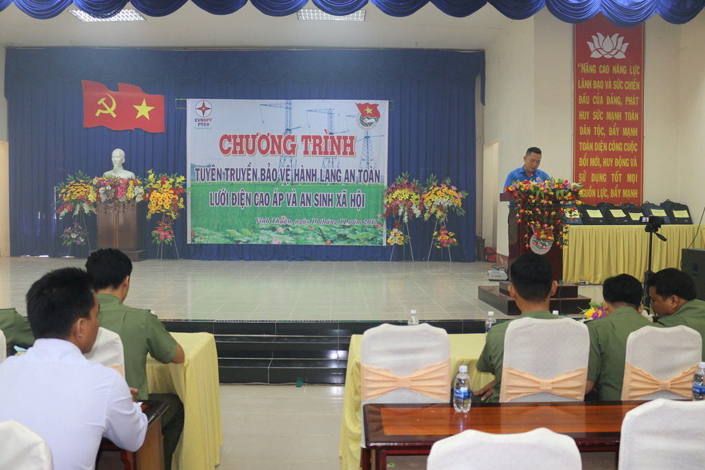Vào lúc 07h30, hơn 50 Đoàn viên thanh niên (ĐVTN) thuộc chi đoàn TTĐ Miền Tây 3 và huyện Vĩnh Thuận cùng các cán bộ chiến sĩ Cảnh sát Giao thông huyện Vĩnh Thuận kết hợp tổ chức Lễ ra quân tuyên truyền bảo vệ hành lang an toàn lưới điện cao áp. Phát biểu khai mạc tại Lễ ra quân, ông Nguyễn Trung Khoa - Bí thư Đoàn Thanh niên Công ty truyền tải điện 4 đánh giá cao công tác chuẩn bị chương trình của chi đoàn TTĐ Miền Tây 3, phổ biến mục đích của lễ ra quân, động viên các ĐVTN phát huy sức mạnh tuổi trẻ trong công tác tuyên truyền, lan tỏa thông điệp tuyên truyền bảo vệ hành lang lưới điện cao áp đồng thời nhắc nhở ĐVTN tham gia chương trình tuyên truyền lưu động tuân thủ luật giao thông trong suốt quá trình tuyên truyền.