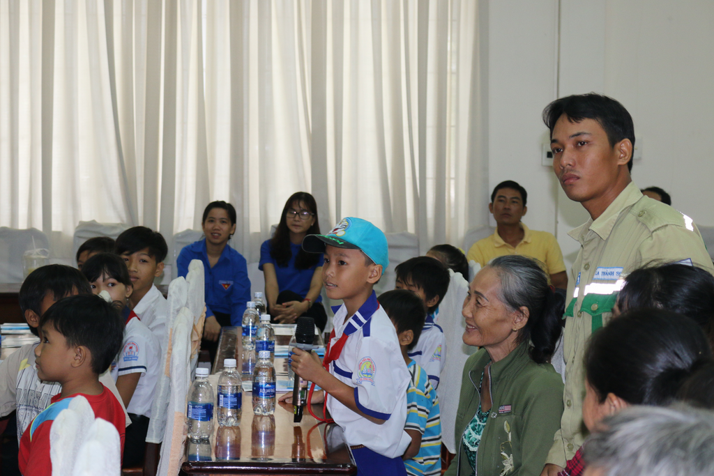 Tiếp sau hoạt động tuyên truyền lưu động, lúc 09h00 tại hội trường UBND huyện Vĩnh Thuận, Ban tổ chức đã tổ chức buổi tuyên truyền tập trung thu hút gần 200 bà con, các em học sinh và các cấp chính quyền, đoàn thể địa phương, các ĐVTN Chi đoàn TTĐMT3 và huyện Vĩnh Thuậncùng báo đài, báo chí địa phương tham gia. Tham dự chương trình có ông Danh Thành – Cán bộ phòng An ninh Kinh tế, Công an tỉnh Kiên Giang; Ông Huỳnh Xuân Luật – UV BTV Huyện Ủy, Phó chủ tịch thường trực huyện Vĩnh Thuận.