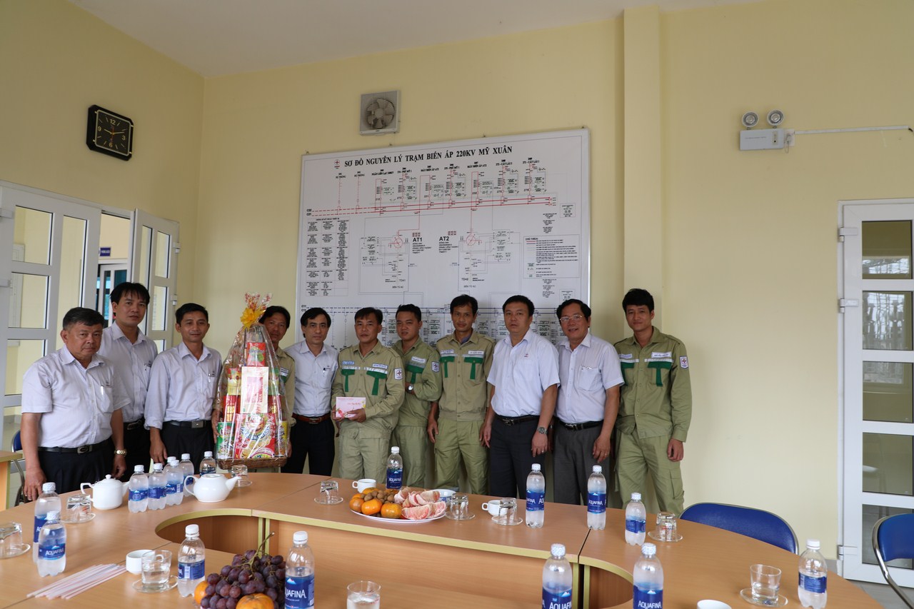 Lãnh đạo Công đoàn EVNNPT và Công đoàn Công ty thăm hỏi tặng quà Trạm biến áp 220kV Mỹ Xuân nhân dịp Tết Mậu Tuất 2018