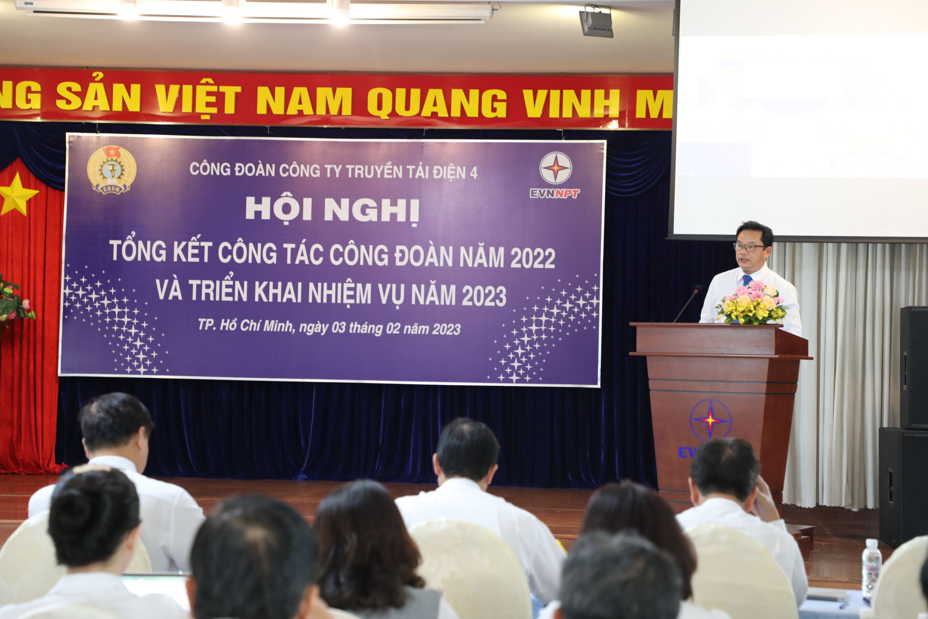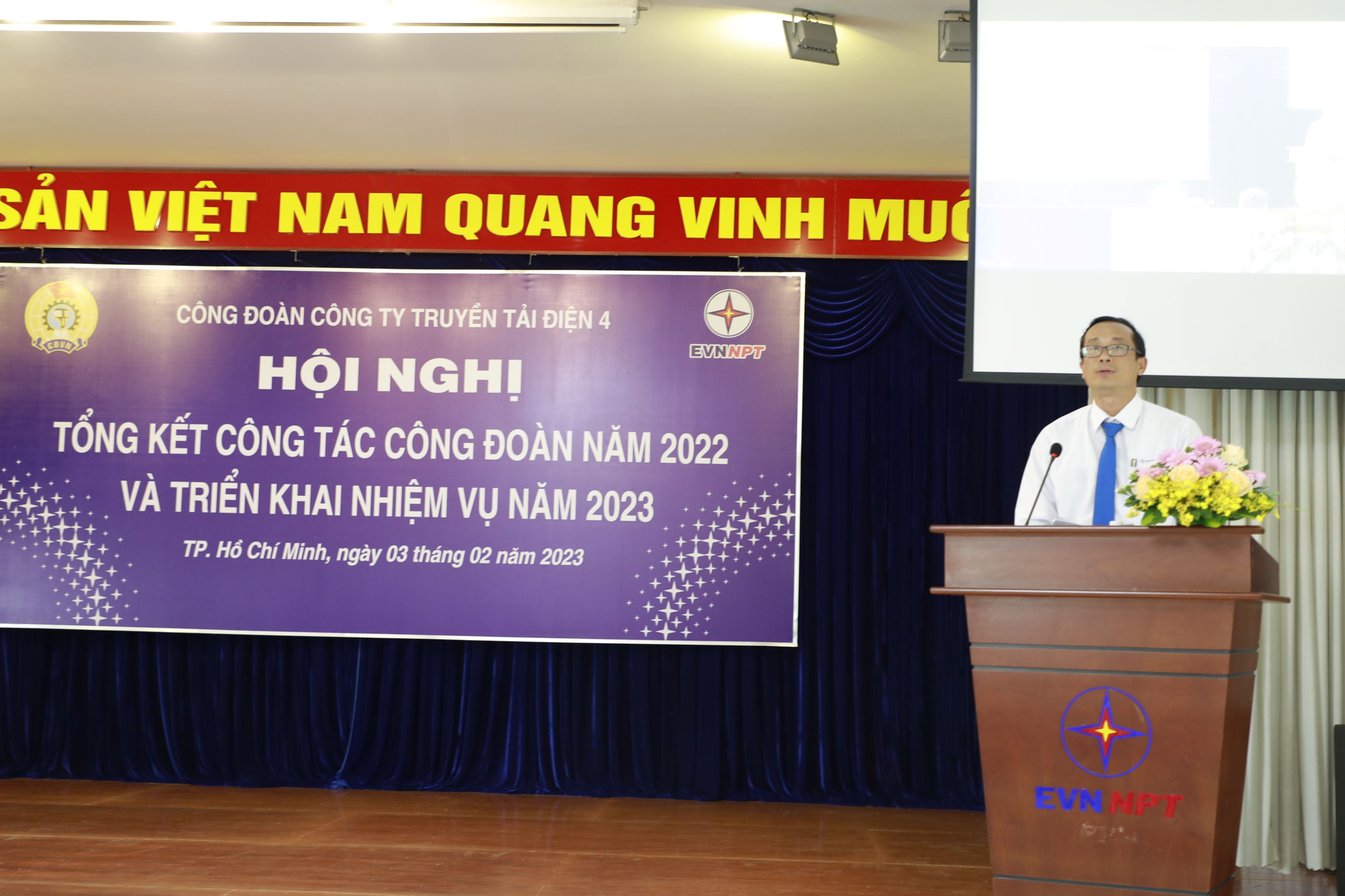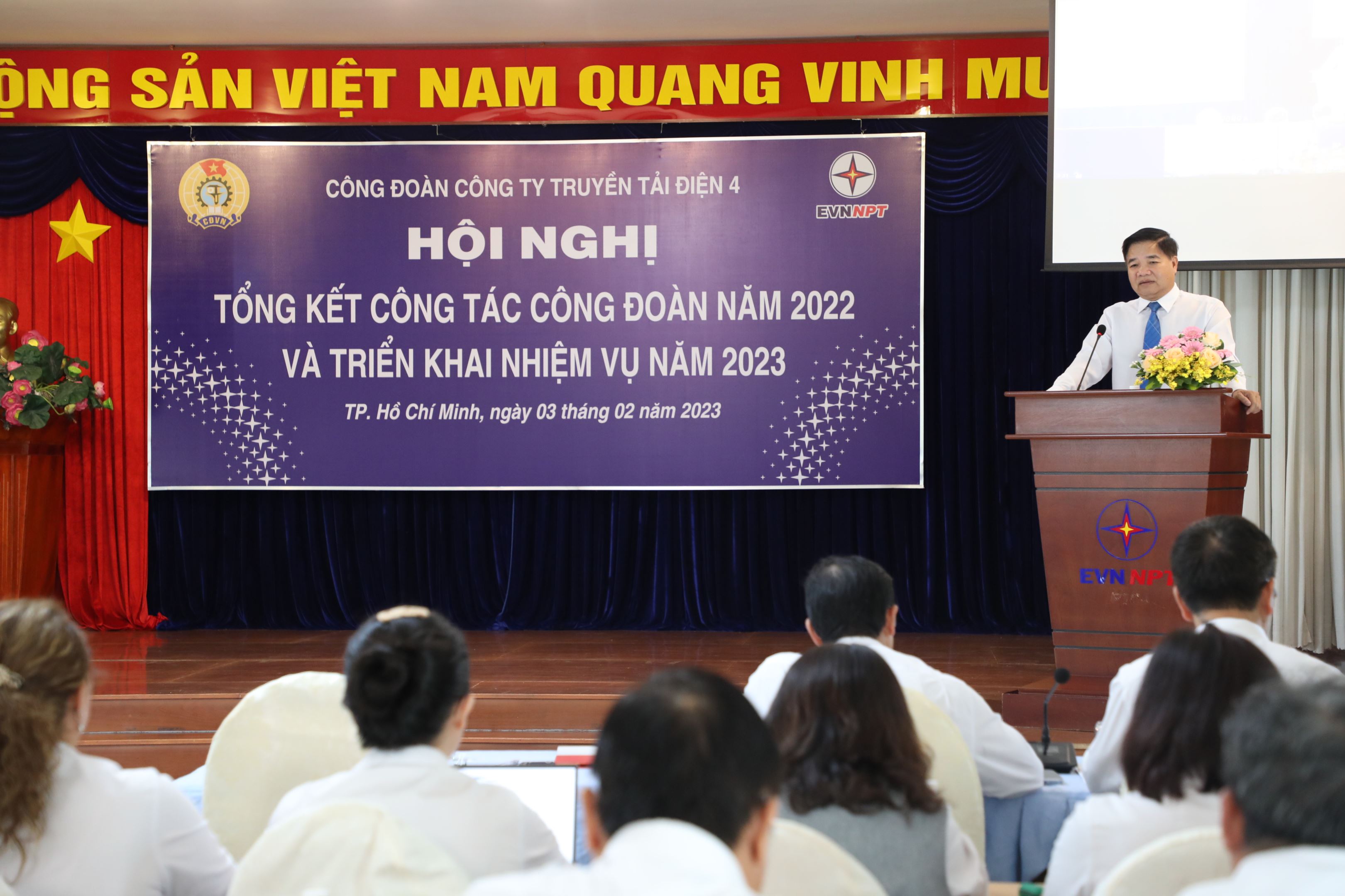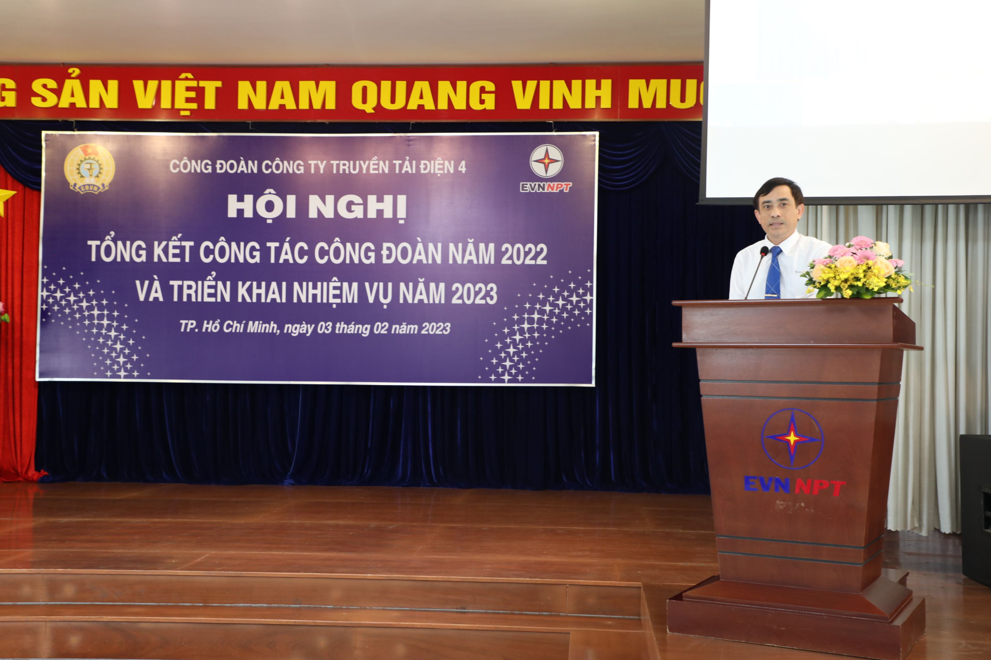 Hội nghị đã được nghe phát biểu chỉ đạo của đồng chí Võ Đình Thủy, Bí thư Đảng ủy, Giám đốc Công ty, theo đó đồng chí đánh giá rất cao sự đóng góp của tổ chức Công đoàn Công ty trong năm vừa qua đã được Công đoàn cấp trên khen thưởng, biểu dương sự nỗ lực của đoàn viên, người lao động đã vượt qua nhiều khó khăn góp phần hoàn thành nhiệm vụ được giao. Trong đó, nổi bật là công tác chăm lo, thăm hỏi kịp thời, công tác đào tạo, bồi huấn nghiệp vụ công đoàn, mạng lưới ATVSV, phong trào sáng kiến..., góp phần nâng cao giá trị đoàn kết, yêu ngành, yêu nghề của CNVCLĐ, làm tốt công tác tuyên truyền giáo dục, bảo vệ lợi ích cho người lao động. Đồng chí Bí thư cũng chỉ ra một số vấn đề Công đoàn Công ty cần cải thiện, quan tâm thực hiện trong năm 2023, đặc biệt là tăng cường công tác tự kiểm tra việc thực thi các Nghị quyết của Đảng ủy Công ty, các chế độ chính sách, tuân thủ; đẩy mạnh thực hiện Chỉ thị 05-CT/TW, thực thi Văn hóa EVNNPT, nhân rộng điển hình tiên tiến trong học tập và làm theo tư tưởng, đạo đức, phong cách Hồ Chí Minh; kiện toàn nhân sự công đoàn tại các Công đoàn cơ sở thành viên còn khuyết nhân sự; tiếp tục tuyên truyền, phổ biến, quán triệt các chương trình hành động của Đảng ủy; có giải pháp cải tiến quy trình làm việc, giảm áp lực công việc theo định hướng ứng dụng mạnh mẽ khoa học công nghệ thông tin, đẩy mạnh chuyển đổi số để tăng năng suất lao động, giảm áp lực công việc cho người lao động; vận động CNVCLĐ tiếp tục rèn luyện thể lực, tạo sự chủ động, ý thức tự giác của đoàn viên, người lao động tham gia phong trào chạy bộ đang phát động mạnh mẽ, đang lan tõa trong CNVCLĐ; tăng cường công tác kiểm tra, giám sát có chương trình phù hợp với quan điểm chỉ đạo của Đảng ủy Công ty.